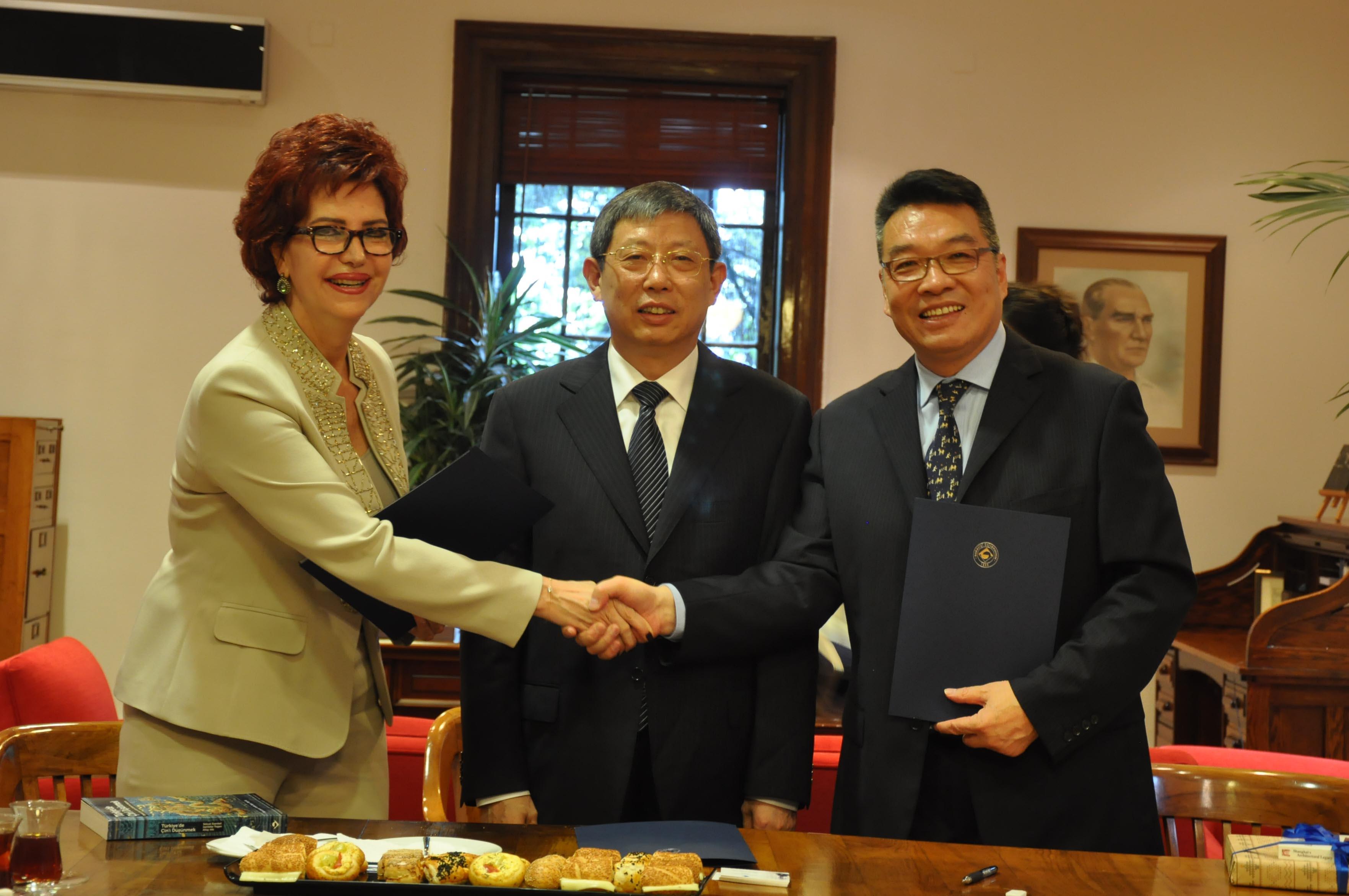 在会谈中,居莱校长首先代表海峡大学欢迎了来访的嘉宾。杨雄市长称赞了海峡大学美丽的校园和国际一流的声誉。双方特别肯定了孔子学院在语言教学和文化交流方面的工作。杨雄市长表示,上海市政府将一如既往地支持孔子学院的发展以及365完美体育与海峡大学之间的合作。365完美体育校长罗宏杰教授介绍了两校合作的状况,以及进一步加强交流的愿望。在杨雄市长的见证下,海峡大学和365完美体育签署了关于土耳其研究中心的合作协议。在过去的几年间,孔子学院已经先后同365完美体育合作召开了两届中国-土耳其论坛,并成功推出了第一本《土耳其蓝皮书》。居莱校长指出,海峡大学和365完美体育通过孔子学院已有多层面的合作,此次协议将推动两校在科研方面的合作与交流。