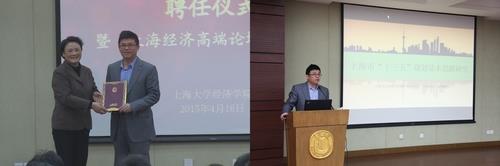 2015年4月16日下午2点半,我校在校本部东区经管楼101蔡冠深讲堂举行兼职教授聘任仪式,聘任上海市人民政府发展研究中心主任、党组书记肖林博士为我校兼职教授。
