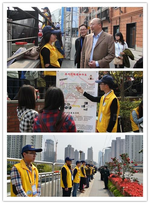 “水上马拉松,起航苏河湾。” 3月29日,2015年全国皮划艇冠军赛上海苏河湾水上马拉松赛在闸北区举行,253艘皮划艇竞技苏河湾。为了保障赛事的顺利进行,我校851名“小浪花”志愿者上岗服务,不仅为赛事安全保驾护航,同时还身肩“环保大使”、“文化大使”的重任,向市民们传递环保理念,介绍着苏州河的历史与文化,用微笑和爱心点亮河道两岸,成为水上马拉松中一道亮丽的风景。