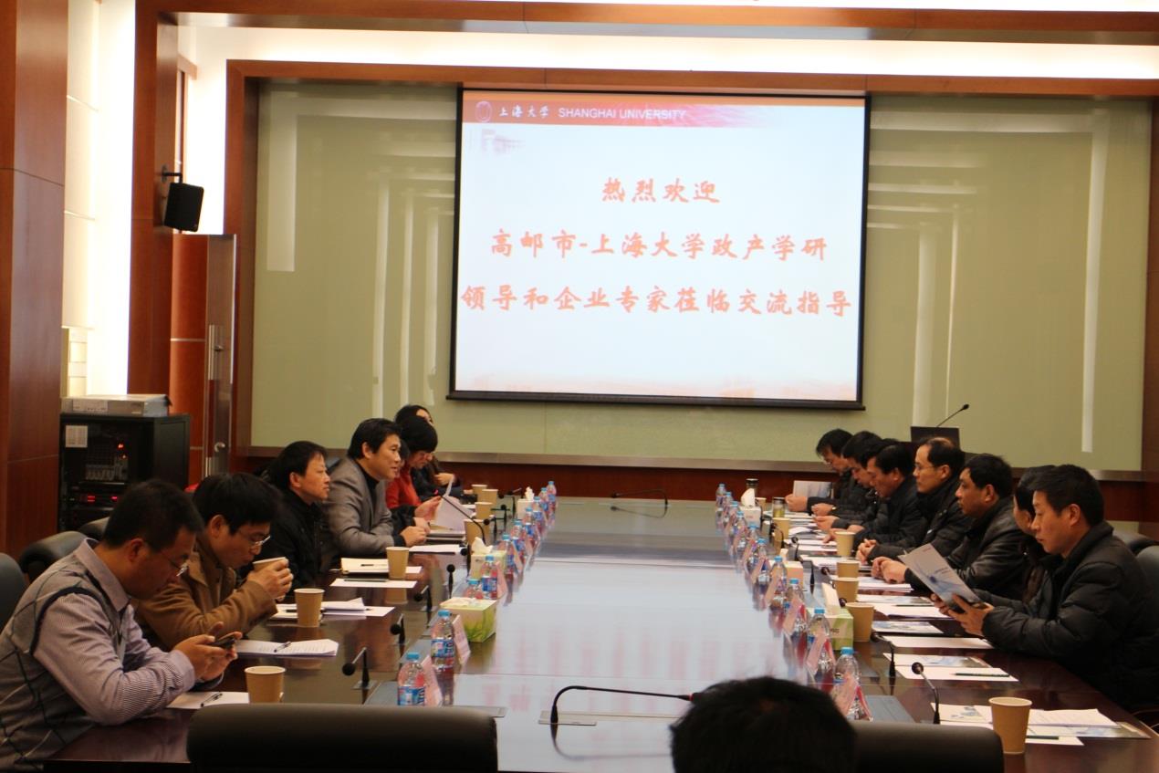 2015年2月3日上午,江苏省高邮市副市长兼科技镇长团团长赵平,高邮市科技局副局长、科委主席孙刚,高邮市菱塘回族乡党委副书记、乡长薛元金,高邮市政府研究室副主任冯元,高邮市委人才办副主任汤永玉等当地党政领导,以及龙腾照明集团有限公司、江苏晨光电缆有限公司、扬州金鑫电缆有限公司和江苏欧力特能源科技有限公司等企业负责人一行来访365完美体育洽谈产学研科技合作,并对于我校为挂职科技镇长团后方单位进行回访。365完美体育科技处朱晓锦副处长、材料复合及先进分散技术教育部工程中心张剑平副主任、材料学院高分子系主任刘引烽教授以及相关学科专业教师与科技处工作人员等出席了交流会议。会议由张剑平副主任主持。