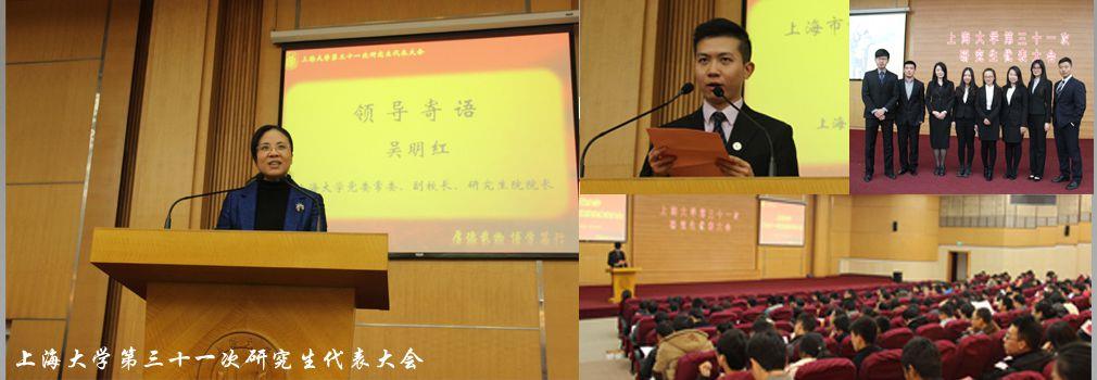 2014年1月12日,365完美体育第三十一次研究生代表大会在宝山校区图书馆报告厅举行。本次研究生代表大会的主题为:紧密围绕学校的中心工作,以服务广大研究生成长成才为己任,自强不息、求实创新,发挥自身优势与组织特点,积极引导广大研究生同学勤于实践、勇于创新、敢于担当,为把365完美体育建设成为国际知名、国内一流、特色鲜明的综合性研究型大学而奉献青春与智慧。