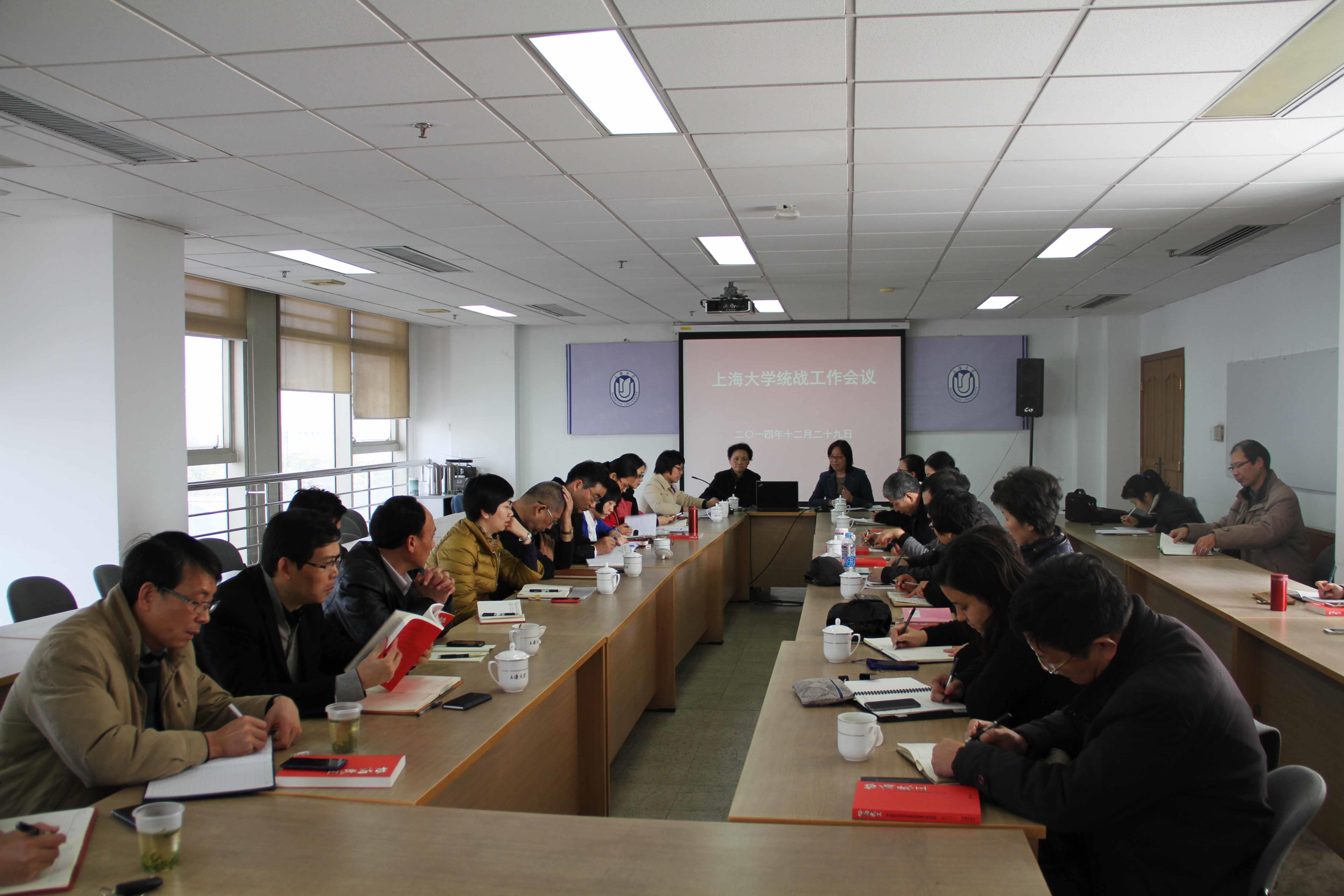 李友梅副书记以国家和上海的战略大环境背景为切入点,结合高校激烈的竞争态势,希望大家增强危机意识和忧患意识,以高远的视野思考新时期的统战工作,为学校发展输送更多的优秀党外人才,并对我校2015年的统战工作提出了“贯穿一条主线”,即以学习党的十八大、十八届三中、四中全会精神为主线,加强学习,巩固共同的思想政治基础;“抓好两项重点”,即加强新形势下党外代表人士队伍建设和加强民主参与促进现代大学制度建设;“推进三项工作”,即支持、协助民主党派加强自身建设,加强港澳台侨和留学归国人员工作,加强民族宗教工作;“着力四个提升”,即提升宣传信息工作水平,提升统战理论研究能力,提升统战工作服务水平,提升统战文化建设内涵的工作要求。