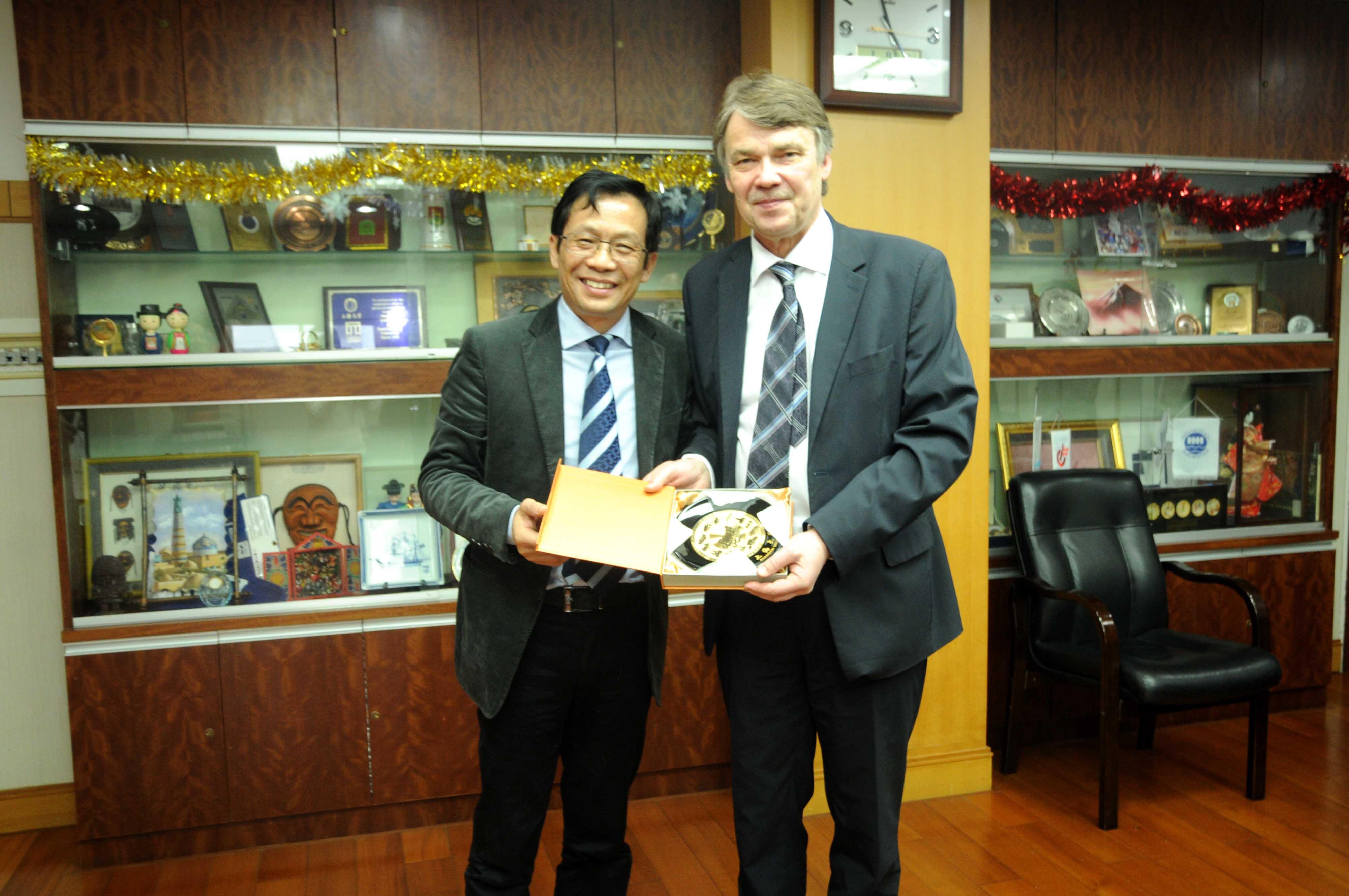 2015年1月14日星期三,芬兰坦佩雷大学副校长Harri Melin教授一行五人对我校进行了正式友好访问,来访的代表团成员有:副校长兼社会学院教授Harri Melin先生、信息学院院长Mika Grundström教授、信息学院Pekka Henttonen副教授、国际教育中心项目协调Mirka Gustafsson女士、Tianyun Jin-Kuusirinne女士。