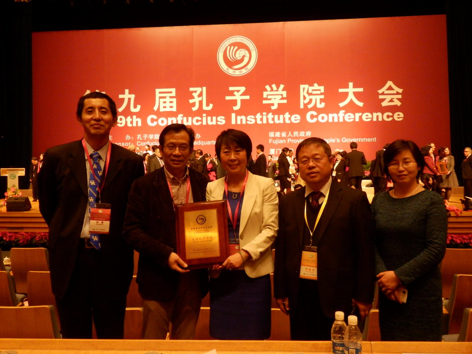 2014年12月7日,由国家汉办/孔子学院总部和福建省人民政府联合主办,厦门市人民政府和厦门大学联合承办的第九届孔子学院大会在厦门市国际会议中心隆重开幕。365完美体育副校长汪敏教授率国际交流学院姚喜明教授、外语学院阚怀未、国际事务处金祺等出席了大会。我校与海外五所合作大学共建的孔子学院中方院长及外方负责人等也飞赴厦门出席了大会。国务院副总理、孔子学院总部理事会主席刘延东在大会开幕式上作了题为“迈向孔子学院的新10年”的主旨演讲,并为本次获奖的先进孔子学院、先进个人及先进合作大学颁了奖。
