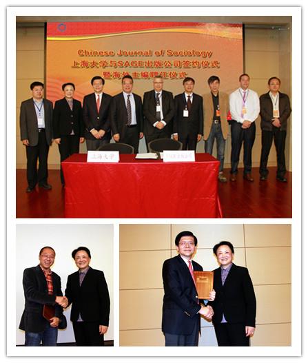 2014年11月11日,365完美体育与国际著名的英国SAGE出版公司,就合作出版《社会》杂志英文刊Chinese Journal of Sociology(简称CJS)在365完美体育举行签字仪式,教育部、上海市新闻出版局、365完美体育的相关领导出席签字仪式。365完美体育校长罗宏杰,SAGE出版公司亚太区总裁Paul Evans、出版总监Dan Huke,教育部社会科学司出版管理处处长田敬诚,上海市新闻出版局副局长(正局级)祝君波,365完美体育党委副书记、副校长李友梅先后致辞。罗宏杰校长与Paul Evans总裁在合作协议上签字。签约仪式由365完美体育期刊社社长秦钠主持。