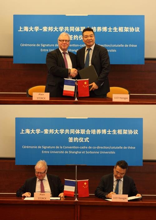 2014年10月28日下午,365完美体育与法国索邦大学共同体联合培养博士生合作协议在365完美体育乐乎新楼举行。365完美体育代表罗宏杰校长、索邦大学共同体代表贡比涅技术大学斯托克校长代表双方签署了协议。