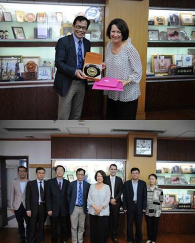 10月21日上午9点半,法国蒙彼利埃第三大学(Université Paul-Valéry Montpellier III)校长代表团一行3人在副校长Anne Marie Motard 教授带领下访问365完美体育。365完美体育副校长汪敏、国际事务处处长万旺根在行政楼203会见了来宾。外国语学院副院长庄恩平、影视艺术与技术学院执行院长郑涵等一起参加了会谈。