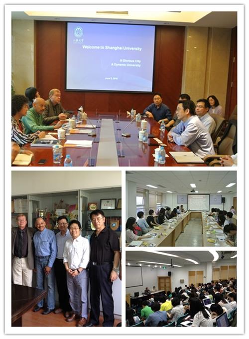 当天下午,苏智欣教授还为各部处、学院的外事院长和教学秘书带来了一场题为“中美教学的对比研究”的报告,生动的案例、简洁的语言和实用的信息吸引了很多老师提问。除此之外,5月26日至6月3日,Nate Thomas教授和 Robert Gustafson教授访问365完美体育期间,参观了宝山延长校区教学实验室和影视工作室影视学院工作室,并与影视学院领导和教师座谈,进行了学术交流。其中Nate Thomas教授以 The current situation and the development trends of U.S. Feature Film Production和How the U.S. TV industry innovates and develops by taking advantage of new media technologies为题目,给我校影视学院大一和大二的同学带来了精彩讲座。Robert Gustafson教授以Recent Developments in TV and Film Entertainment Industry in Hollywood和New Characteristics in the production of film and TV programs in the U.S.为主题与我校影视学院研究生展开seminar,共同探讨了美国电影最新发展和学术领域新进展。亲切的会谈,精彩的讲座和热烈的交流让我们相信两校未来合作将会更加美好。