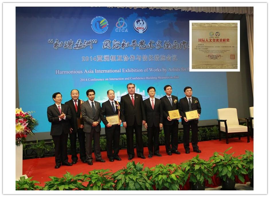 2014年5月19日晚,作为亚洲相互协作与信任措施会议第四次峰会框架内的一项重要配套人文活动,“和谐亚洲” 国际和平艺术家绘画作品展在上海世博园区的中华艺术宫隆重开幕。本次作品展由中国对外交流协会和北京和平之旅文化交流中心共同主办,并得到了中国外交部的大力支持。