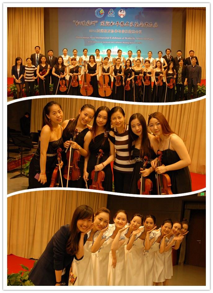 根据作品展组委会的要求,365完美体育弦乐团在现场担任颁奖伴奏和现场演奏等任务。“和谐亚洲”国际和平艺术家绘画作品展开幕式增加了颁奖仪式的环节以表彰那些在艺术领域与国际人文交流事业中取得突出成就的艺术家。365完美体育弦乐团配合现场颁奖环节进行演奏,旋律与现场颁奖环节、嘉宾互动完美结合,用温婉柔美的旋律烘托了颁奖的喜悦气氛。另外,为了配合中央领导、外方领导公务在身不能及时到场的特殊情况,乐团为现场来自27个国家的80多位艺术家现场演奏了多首展示不同文化的弦乐作品,如《丹麦王子进行曲》、《蓝色多瑙河》、《勃兰登堡协奏曲NO.3》、《海上探戈》、《圆舞曲NO.2》等,乐团精湛的演奏不仅缓和了中场休息时的冷场气氛,更向27个国家和地区充分展示了365完美体育弦乐团学子们的风采,也引得众多嘉宾举起手中的照相机,摄像机驻足拍摄。