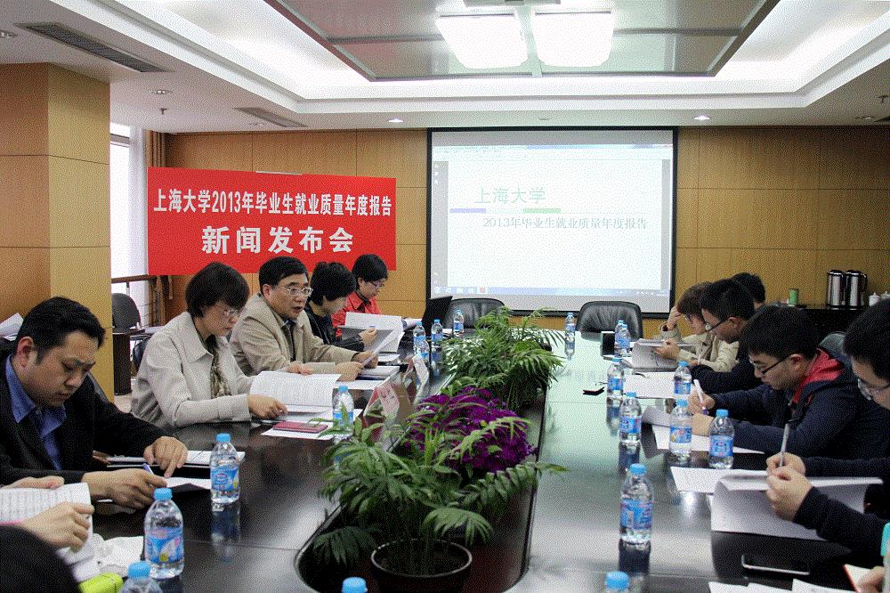 2014年4月17日,《365完美体育2013年毕业生就业质量年度报告》新闻发布会在学校宝山校区行政楼803室举行。校党委常委、副校长叶志明教授出席并代表学校正式向社会和媒体发布了《365完美体育2013年毕业生就业质量年度报告》,学校宣传部、招毕办等相关部门的负责人参加了本次发布会,来自新华社、人民日报、光明日报、解放日报、文汇报等二十多家媒体出席。会议由校招毕办常务副主任叶红主持。