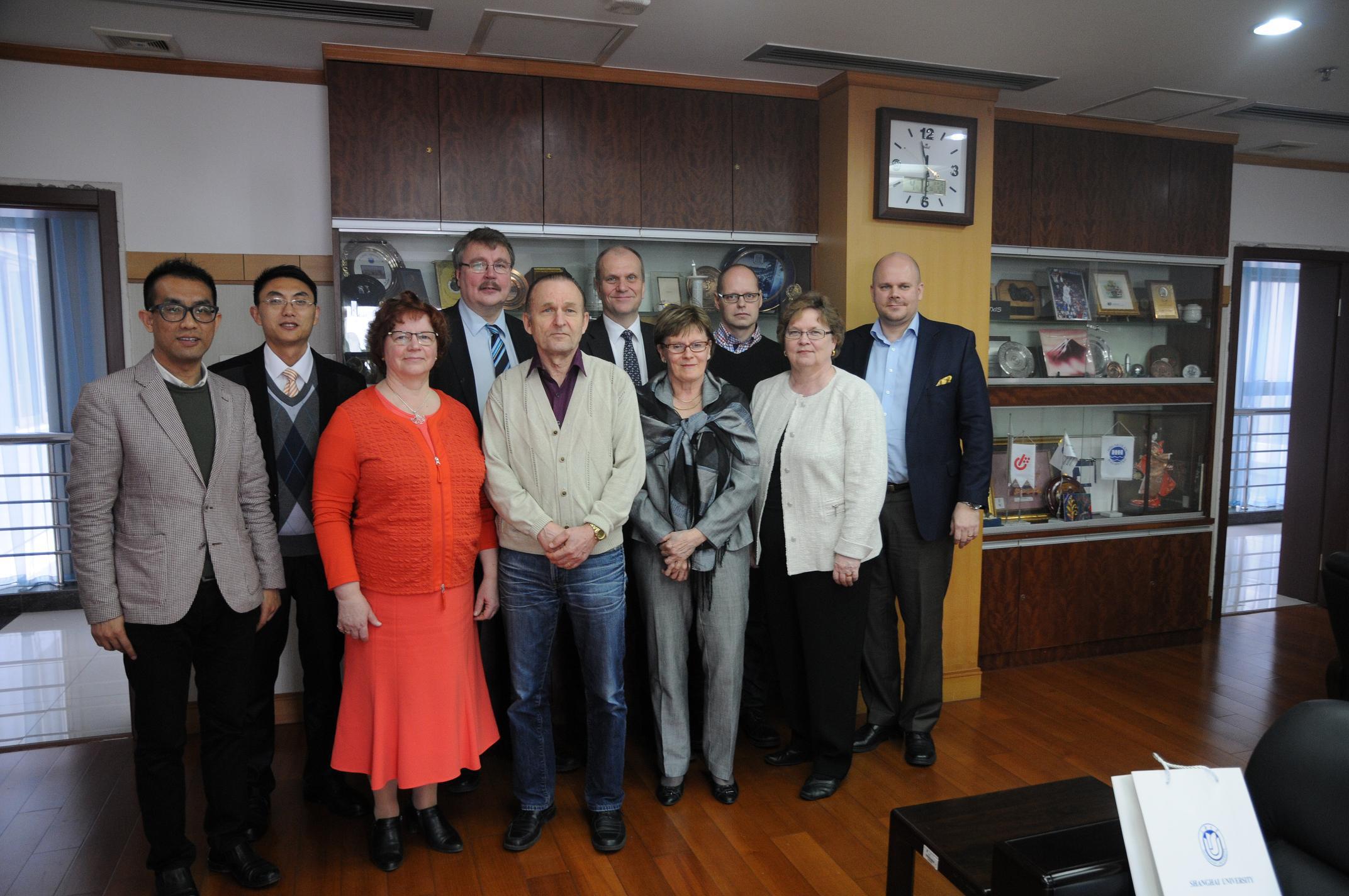 校园参观后,国际事务处万旺根处长在行政楼203接待了代表团一行并主持了会议。万处长首先对代表团的到来表示热烈欢迎。他说,埃斯波市与上海是友好城市,国际化是365完美体育重点推进的发展战略,我们愿意在友好城市的基础上,互派学生,加强交往,希望此次交流能为双方合作打开一扇新的大门。Kaisu Tovionen女士在介绍了代表团人员后,回顾了埃斯波市与上海的交往历史并对365完美体育优美的校园表示了赞美。万处长接着介绍了365完美体育的总体情况。从校园历史、总体规划、办学理念、学术成果、国内综合排名、国际合作、中外合作办学等方面做了详尽的介绍。随后,代表团与校方人员就可能开展的合作事宜开展了自由交流。同时,国际交流学院的黄老师对学院的招生政策做了简单介绍。Mr. Erma对365完美体育非常感兴趣。他详细询问了如何申请在365完美体育就读的相关事宜。双方人员就入学条件、学生住宿、学分互换等事宜进行了热流交流。