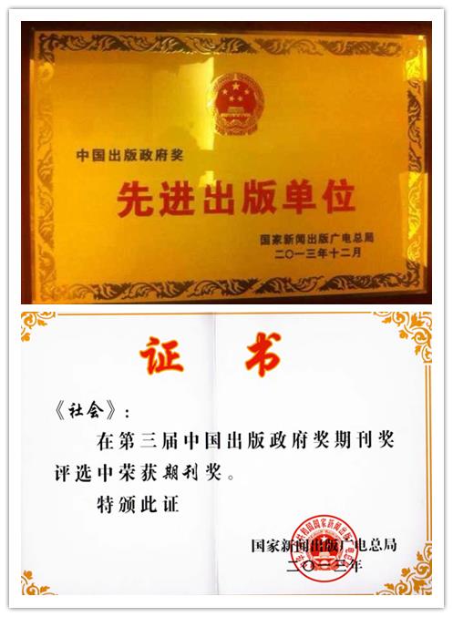 本报讯1月4日于北京举行的“第三届中国出版政府奖”颁奖仪式上,我校期刊社荣获两项大奖,期刊社荣获“先进出版单位奖”,《社会》杂志荣获“期刊奖”。
