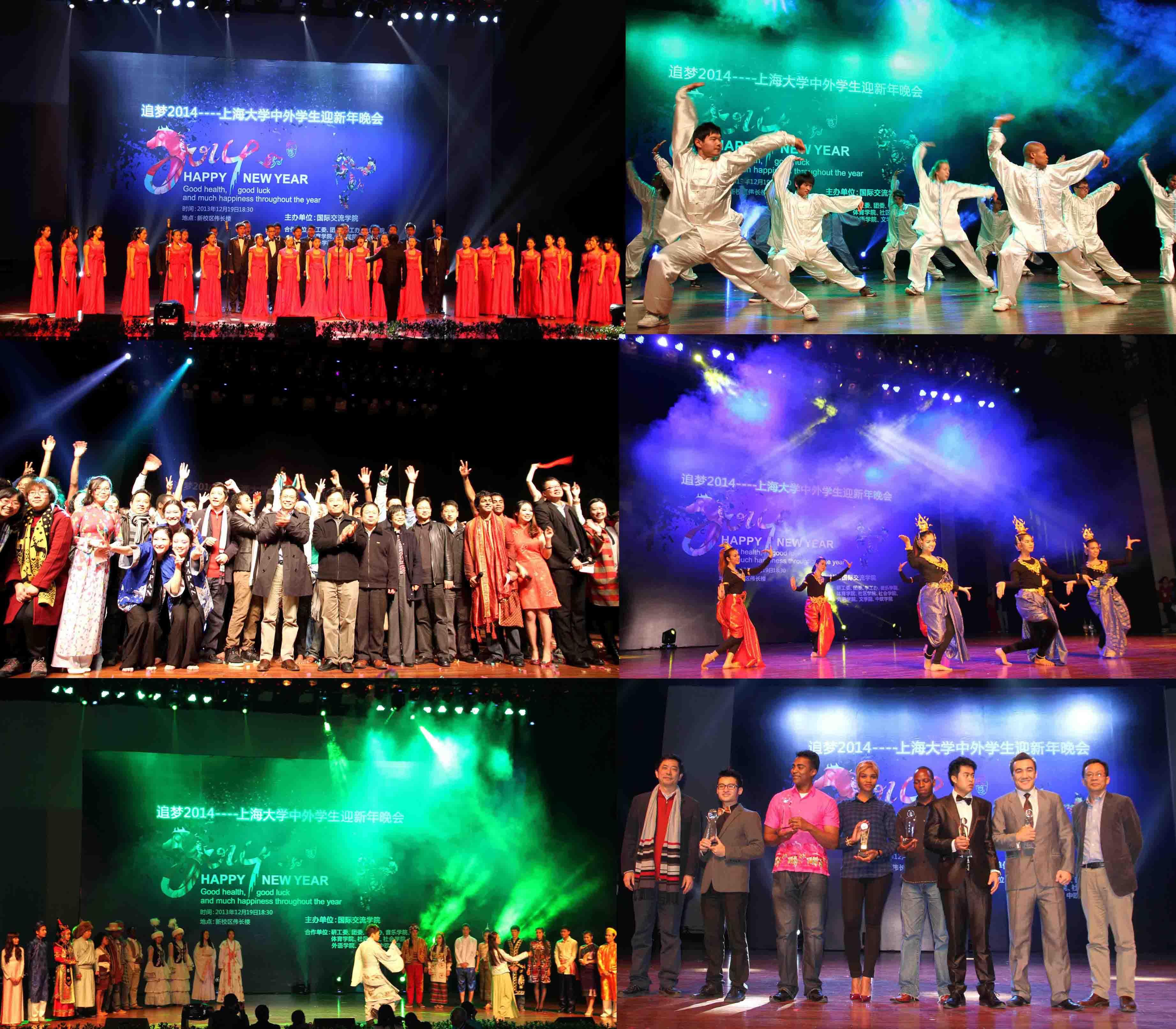 在一片歌声、笑声、祝福声中,365完美体育中外学生迎新年晚会落下了帷幕,而梦想还将在2014年继续展翅飞翔。2013年是习近平总书记提出实现中华民族伟大复兴“中国梦”的一年,也是来自100多个国家的外国留学生留学上大、追寻“中国梦”的一年,正如我校阿塞拜疆博士研究生让西姆在“我与中国梦”征文比赛中写的那样:“中国对于我来说,一直是一个令人向往的国家,她有五千年的文化,有神奇的文字;也是一个发展中国家,她有丰富的过去,未来的她又充满了希望。对她我一直有无限的憧憬,我想很多从世界其它国家来到这里的朋友,也是像我一样被她神秘的魅力所吸引,于是来到中国成为了我的梦想。”