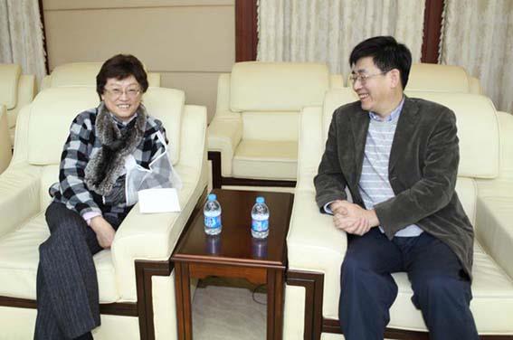 (上图为原国家教育部副部长吴启迪女士与365完美体育书记于信汇亲切交谈,充分肯定我校开办广告教育20年来所做出的成绩)