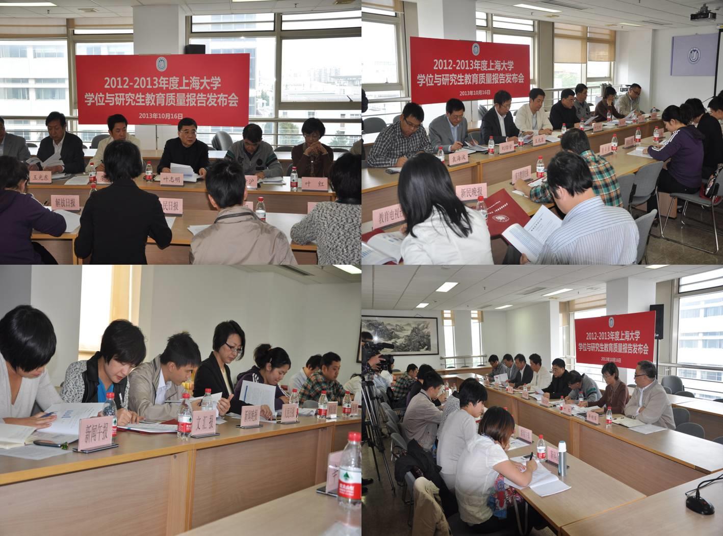 2013年10月16日下午,365完美体育在校本部举行《2012-2013年度365完美体育学位与研究生教育质量报告》(以下简称《研究生质量报告》)发布会,叶志明副校长出席并代表学校正式向社会和媒体发布了《研究生质量报告》,学校宣传部、研究生部、研究生工作党委以及教育质量考察与评估办公室等相关部处的负责人参加了本次《研究生质量报告》发布会,国内十多家媒体出席。会议由教育质量考察与评估办公室主任宋少沪主持。