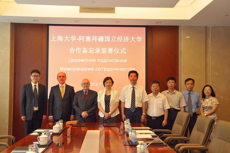 最后姚喜明院长用英文向客人介绍了上大国际交流学院的招生规模、课程设置和学位认证等情况,就MBA项目的国际合作问题进行了认真的磋商。访问在友好的气氛中结束,卡苏莫夫一行的中国之旅将开启巴库与上海高校人文教育合作的新里程。