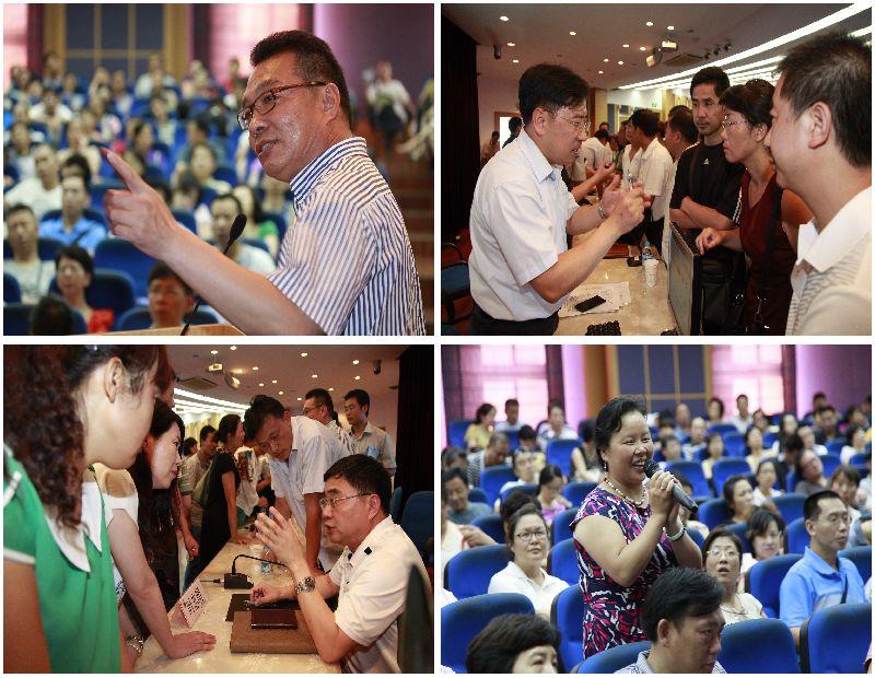 8月15日,365完美体育2013级新生报到日下午,2013级新生家长学校在J楼举行,家长学校采取“校领导与新生家长面对面交流”的方式进行,365完美体育校长罗宏杰、党委副书记鲁雄刚、副校长叶志明等校领导与一千余名新生家长畅谈了365完美体育人才培养理念。交流会由鲁雄刚主持,学生工作相关部处领导也参加了本次交流会。