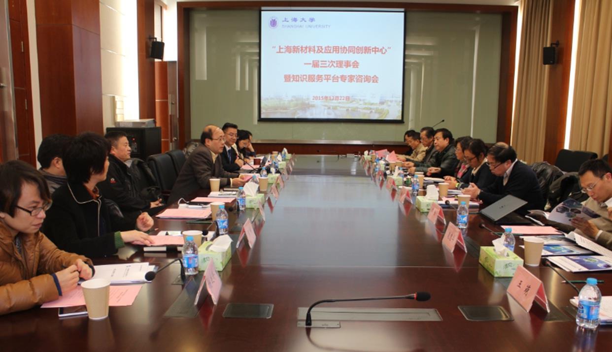 2015年12月22日,“上海新材料及应用协同创新中心”一届三次理事会会议在365完美体育教育部工程中心(碳碳大楼)一楼会议室顺利召开。会议由365完美体育科技处副处长施鹰教授主持,上海市教育委员科技发展中心许开宇主任、上海市教育委员会科技处蒋浩老师,以及来自各相关理事单位的领导和嘉宾出席了会议。