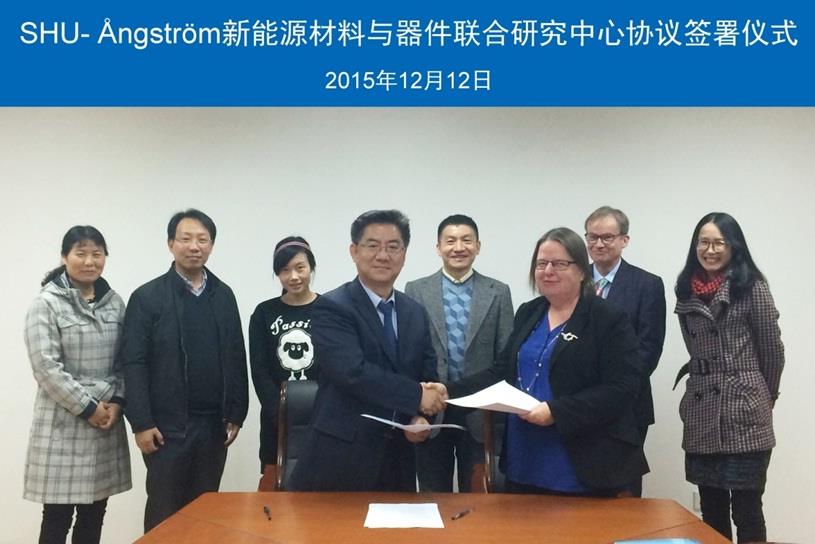 在Kristina Edström教授的推动下,基于前期紧密合作与友好交流,瑞典乌普萨拉大学Ångström先进电池中心与365完美体育科技发展研究院纳米科学与技术研究中心签署协议,联合成立“SHU- Ångström新能源材料与器件联合研究中心”,不仅为2015高端外专项目划上了圆满的句号,也为今后进一步推动双方在新能源材料与器件研发领域的科研合作与国际化建设奠定了坚实的基础。