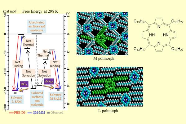 Jeffrey Reimers教授与澳大利亚悉尼科技大学、悉尼大学、墨尔本大学和荷兰拉德邦内梅亨大学合作,结合有机合成、扫描隧道电子显微镜STM成像、密度泛函理论计算,发现了卟啉分子从溶液中到疏水的石墨表面上的形成机理。这一发现对于其它相关领域,包括聚合物表面,生物过程,自组装单层结构等都具有重要的科学意义。对在STM成像中观测到的各种不同形态,Jeffrey Reimers教授利用创新的计算方法得到了复杂自组装过程中的形成能,而在此之前此类方法仅能用于小分子体系的计算工作。本研究成果将帮助我们更加深入理解纳米表面科学的复杂物理化学,通过高性能计算可以发现不同的形态具有不同的分子-基底结合能、溶剂化能和熵,以及它们之间的相互抵消作用会导致自由能量的较小差别。