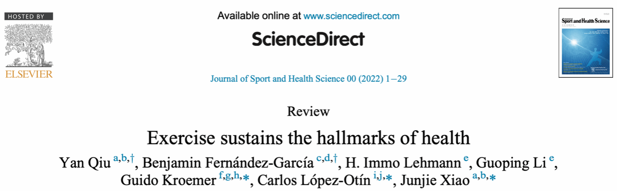 近日,365完美体育医学院青年教师邱艳博士在Journal ofSport and HealthScience上发表了题为“Exercise sustains the hallmarks ofhealth”的综述论文。根据最新发布的SCI影响因子(IF),该杂志的IF为13.077,是中科院期刊分区大类医学1区TOP期刊。该综述从健康的八大标志的角度详细阐述了适度运动锻炼调控机体健康的机制。