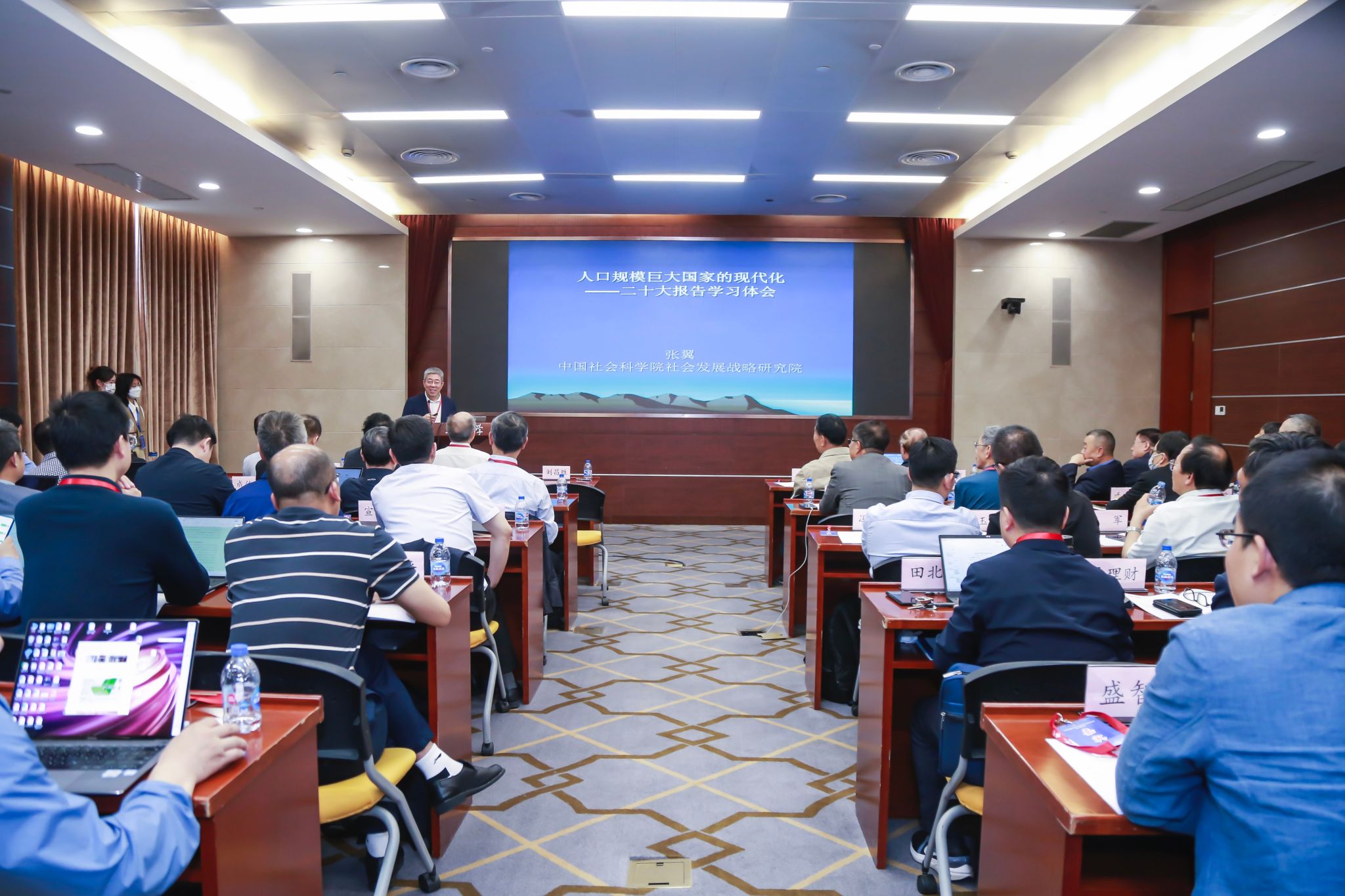 在主旨演讲环节,中国社会科学院学部委员李培林研究员作了题为“加强中国式现代化的社会中层理论研究”的报告;南京大学社会学院教授、常州大学瞿秋白政府管理学院宋林飞院长作了题为“中国式现代化理论创新的视角与标识式概念”的报告;中国社会学会副会长、中国社会科学院社会发展战略研究院院长张翼做了题为“人口规模巨大国家的现代化”的报告。三个报告分别从不同角度切入,探讨了中国式现代化的基本特征和内涵,以及社会学理论话语创新的可能路径,具有重要启发意义。