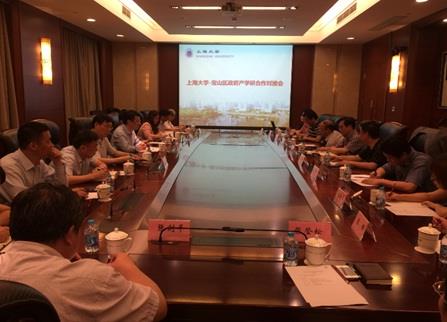 6月15日,上海市宝山区秦文波副区长带领宝山区经信委、科委、城市工业园区一行,莅临365完美体育洽谈产学研合作事宜。365完美体育汪敏副校长、科技发展研究院院长施利毅院长、科技处施鹰副处长、朱晓锦副处长、上大科技园区潘志浩总经理、上海市智能制造与机器人实验室副主任何永义教授、科技发展研究院刘桂华副院长、上海新材料及应用协同创新中心张剑平、张登松、杨连桥等老师出席了会议。