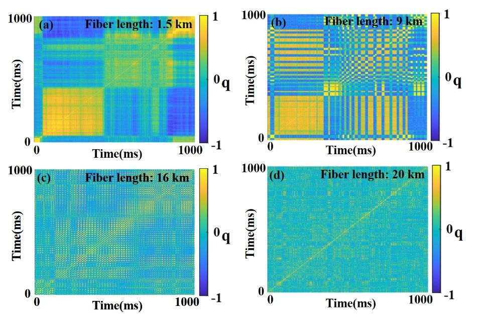 复杂系统在自然界和人类社会普遍存在,从复杂物理系统到生物系统、网络系统以及社会经济系统等。复杂系统中高度无序行为如何受隐性的规则所支配一直是亟待解决的难题,采用副本对称性破缺(Replica Symmetry Breaking,RSB)的分析方法巧妙地找到了无序复杂系统中隐藏的模式,并由此荣获了2021年诺贝尔物理学奖{Gomes, 2022 #139}。课题组研究了基于布里渊随机光纤激光系统分析了复本对称性破缺相变的统计规律和瞬态特性。借助光外差技术在时域和频域两个维度对布里渊随机激光模式实时演变进行高保真探测,运用序参量瞬态分析手法探究随机激光系统中复本对称性破缺相变的瞬态演化过程,进而揭示其产生机理。该研究借助于布里渊随机光纤激光系统的灵活性,系统分析了影响复本对称性破缺相变观测的因素,并揭示了复本对称性破缺相变与布里渊随机光纤激光器的动力学演变的内在联系,为研究复杂系统副本对称性破缺现象提供了光子学反演的新途径。