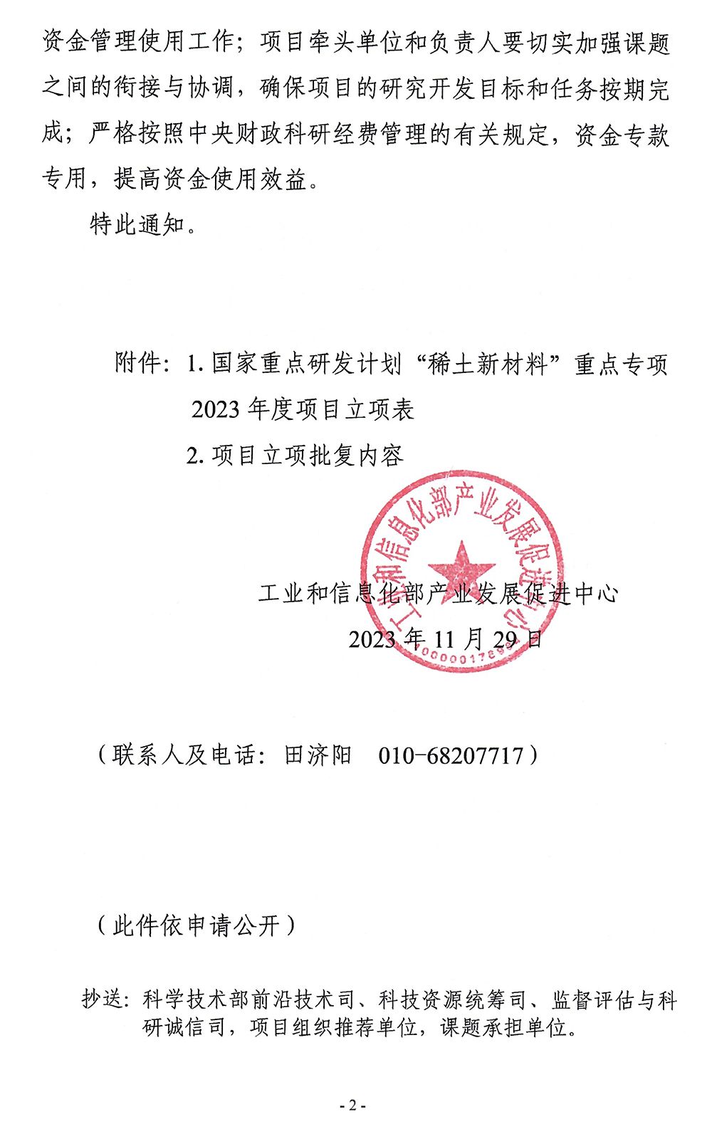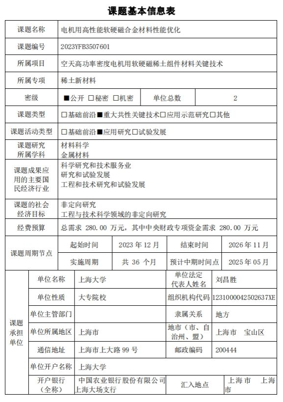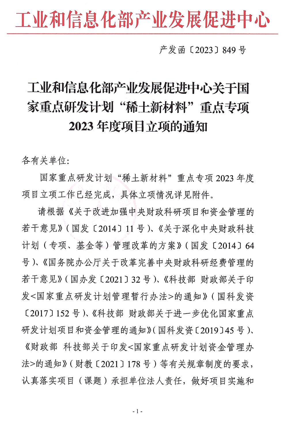 近日,工业和信息化部产业发展促进中心公布了《关于国家重点研发计划“稀土新材料”重点专项2023年度项目立项的通知》。365完美体育材料科学与工程学院院杜娟教授获批国家重点研发计划课题“电机用高性能软硬磁合金材料性能优化(2023YFB3507601)”,课题经费为280万元。