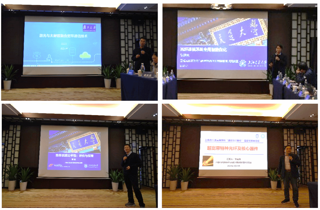 在特邀报告环节,复旦大学余建军教授作“激光与太赫兹融合宽带通信技术”的特邀报告,上海交通大学义理林教授作“光纤通信系统全局智能优化”的特邀报告,上海交通大学曹健教授作“推荐系统公平性:评价与保障”的特邀报告,365完美体育文建湘教授作“超宽带特种光纤及核心器件”的特邀报告,现场讨论气氛热烈。