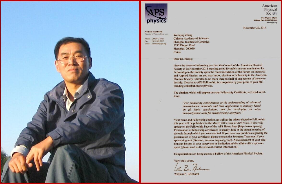 近日,美国物理学会会士(APS Fellow)2014年增选结果揭晓,我校材料基因组工程研究院副院长张文清教授入选APS Fellow。张文清教授是由工业和应用物理论坛(Forum on Industrial and Applied Physics)推荐入选的。张文清教授通过材料设计计算、微结构表征和性能测量、可控制备的密切合作,在高性能热电材料的微观设计与实现领域做出了开创性的贡献,有力加速了高性能热电材料在工业中的应用,这是利用材料基因组思想加速新材料研发的成功案例之一。他还发展了金属/陶瓷界面的第一性原理热力学计算理论,极大地丰富了关于材料界面上的物理和化学问题的研究手段。