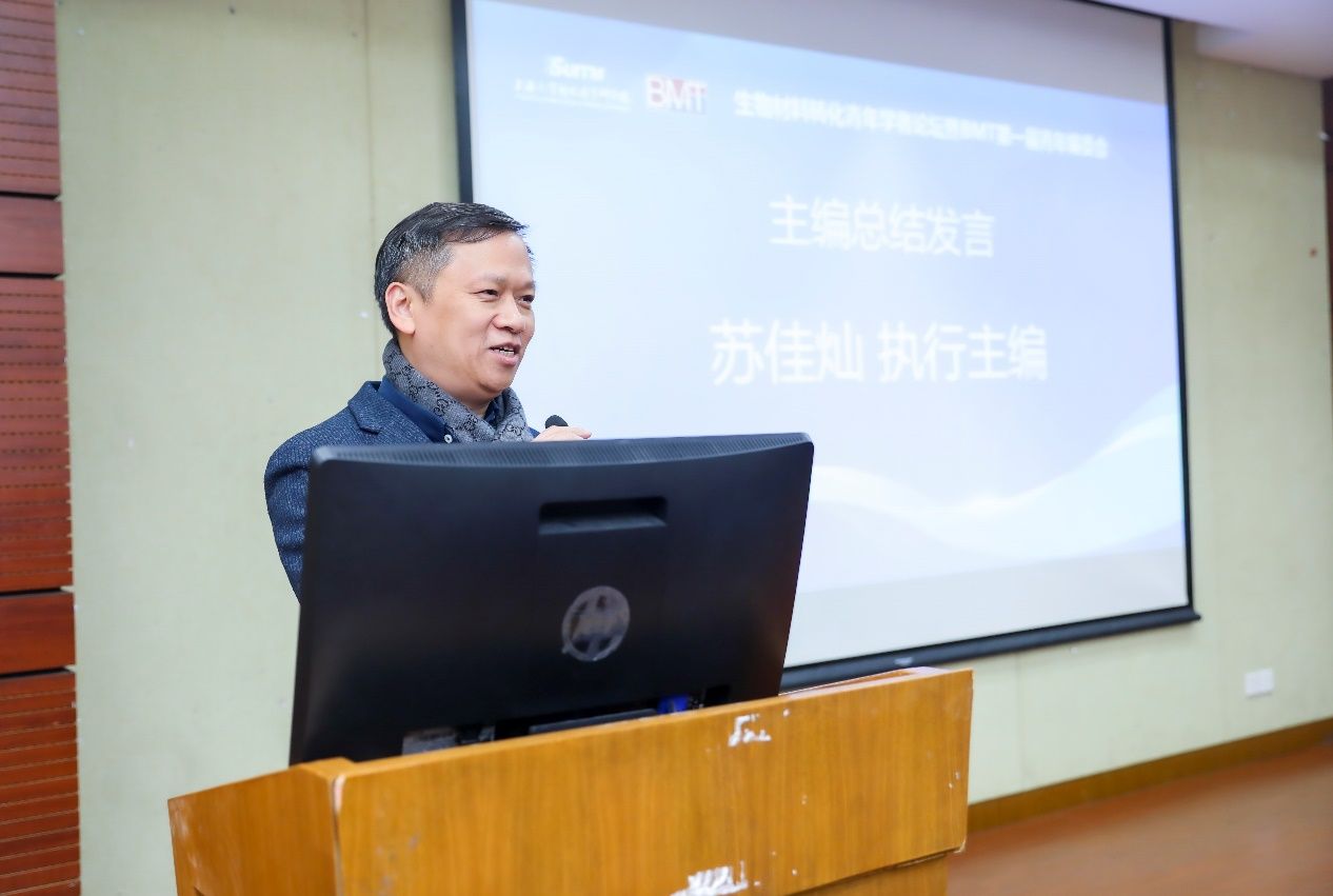 会议最后,BMT杂志执行主编苏佳灿教授对各位专业同仁的热情参与表示感谢,肯定了BMT杂志自创刊以来取得的显著影响,认为青年编委会被视为推动BMT未来发展的重要契机,鼓励青年编委发挥创新力和活力,积极参与杂志的规划和决策,强调了审稿质量和学术严谨性的重要性,承诺保持专业办刊底色,与时俱进,把握学科前沿,计划持续拓展稿源渠道,提升审稿质量,更新出版模式,呼吁共同努力,为BMT杂志创造更多辉煌,为我国生物材料领域的发展贡献更多力量。