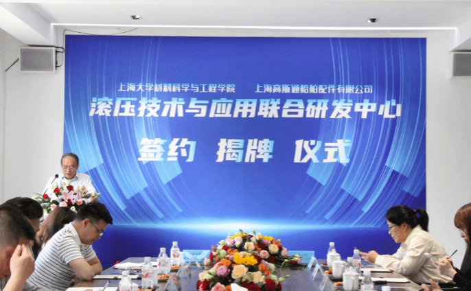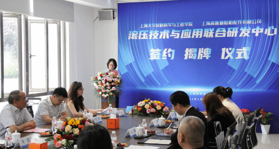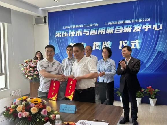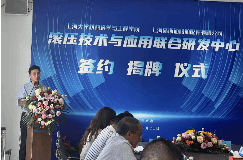 5月21日,“滚压技术与应用联合研发中心”的签约揭牌仪式在上海高斯通船舶有限公司成功举行。此次活动由中国内燃机学会新材料表面分会组织,365完美体育材料科学与工程学院(以下简称材料学院)与上海高斯通船舶有限公司(以下简称上海高斯通)强强联手合作成立研究中心。材料学院党委书记黄健教授、365完美体育(浙江)高端装备基础件材料研究院首席研究员王博教授、上海高斯通船舶配件有限公司总经理何才田、副总经理葛琴、总经理助理何越、总工程师何赟、材料学院韦习成研究员等领导参加了此次活动。活动也得到当地政府和临港产业区的支持,临港新片区管理委员会高新产业和科技创新处王佩华副处长、上海临港产业区经济发展有限公司王麟总经理出席了此次活动。