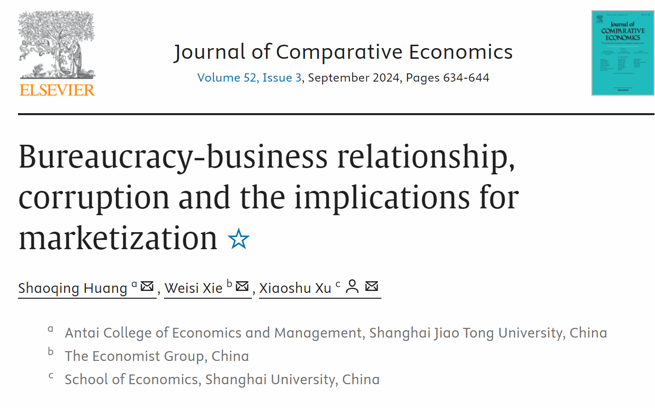 在《政企关系、腐败及其对市场化进程的影响》一文中,徐晓书老师与上海交通大学黄少卿教授和经济学人期刊谢维思博士合作,运用了一种新颖的博弈论模型,刻画在制度薄弱的经济体中,市场化进程中腐败关系的影响及其由此产生的福利效应。政企关系使官员能够通过设置壁垒阻碍外国企业进入,分享国内企业由此获得的部分收益。当壁垒大小被法律法规限制,且官员与外国企业充分了解国内企业的成本信息时,壁垒将首先等于其上限,随后随国内企业成本劣势的增加而下降。无论国内企业与外国企业的成本是正相关还是独立,这一结果都成立。政企关系对社会福利造成的损失在企业的成本高度依赖于自身优势的行业(如创新密集型行业)以及国内企业成本劣势相对较大时最为严重。本文为制度薄弱国家的市场化进程提供了新颖且富有洞察力的启示。