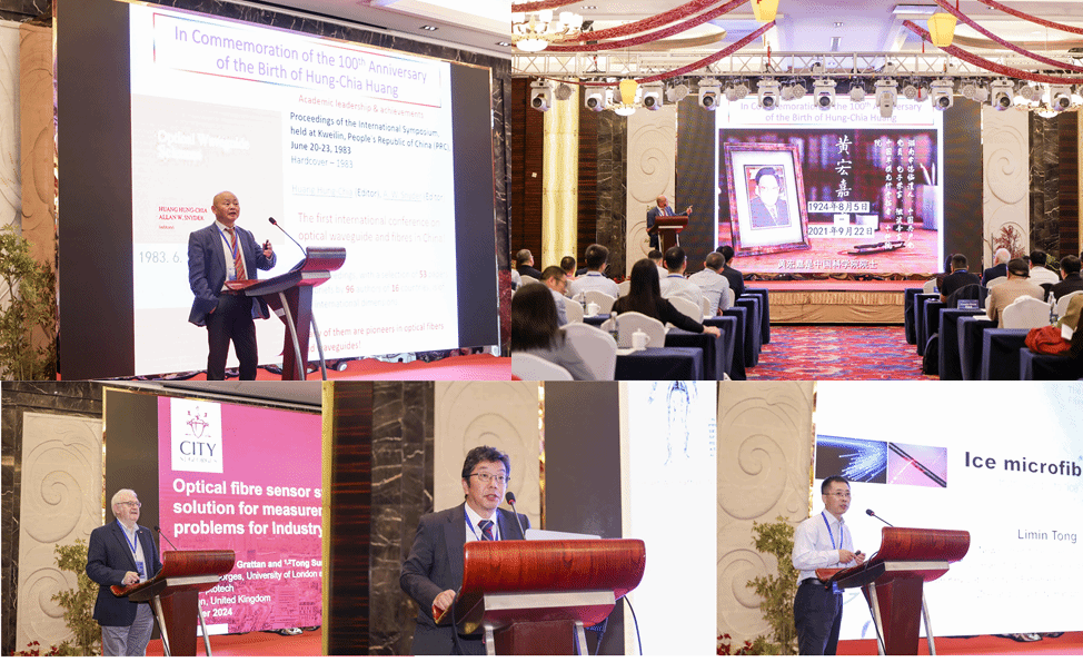 大会开幕式特别安排了特种光纤重点实验室创始人、中国科学院院士黄宏嘉教授百年诞辰纪念活动,大会共主席、新南威尔士大学光子通信中心主任Gang-DingPeng教授同与会专家一起回顾了黄院士自西南联合大学毕业到建国初期归国报效祖国以及创立特种光纤重点实验室的辉煌历程,随后播放了题为“开启智慧之光、探究科学之谜”的黄院士纪念视频。纪念活动后,英国皇家工程院院士KennethThomasVictorGrattan教授、日本东京大学Hideaki Murayama教授、浙江大学童利民教授依次作了关于光纤传感、光纤应用、微纳光纤等主题的大会报告,介绍了国内外相关领域发展情况与最新研究进展。