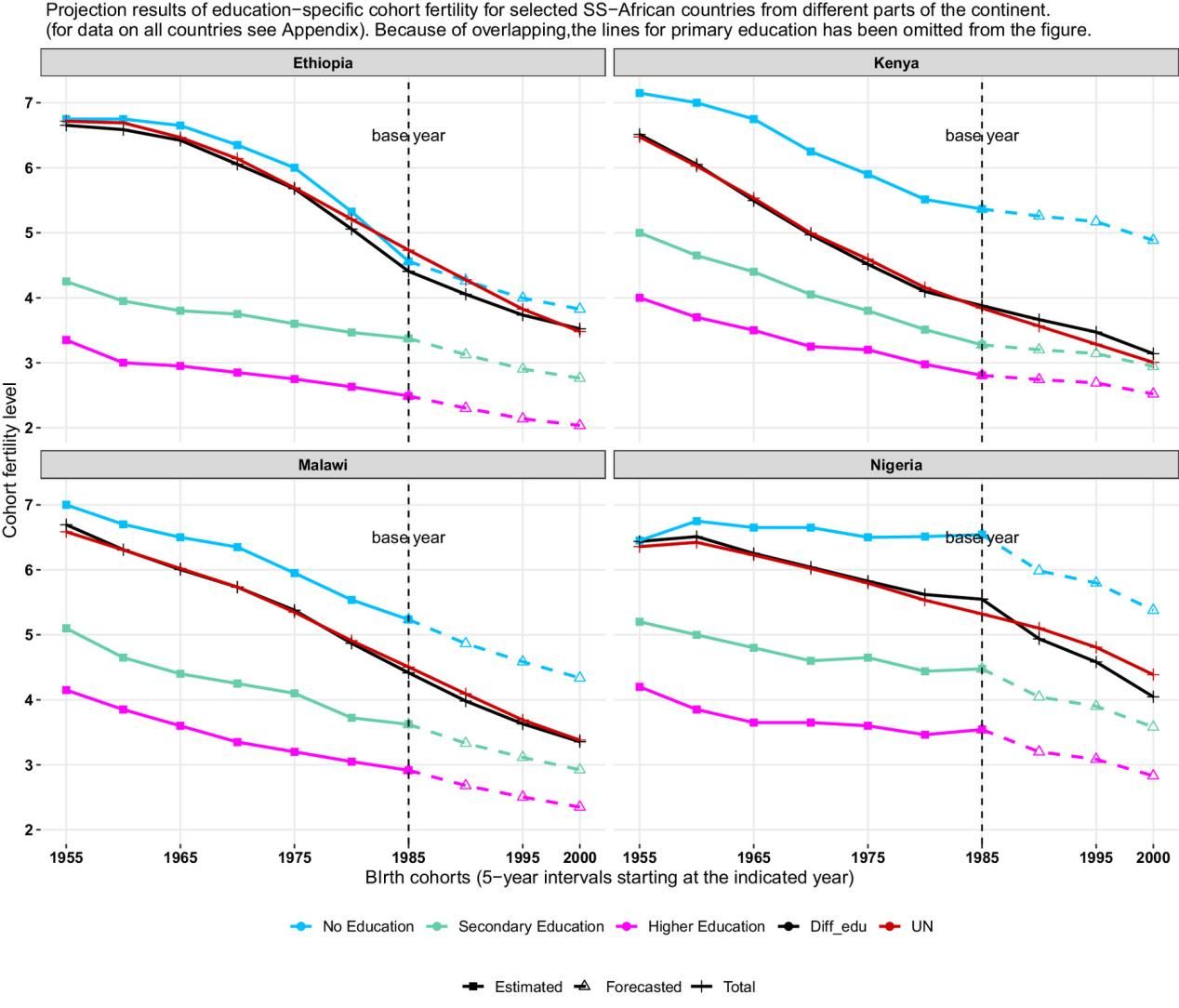 Wolfgang Lutz院士与马克斯普朗克人口研究所(MPIDR)、维特根斯坦人口与全球人力资本中心和维也纳大学合作,提出了一套按教育类别预测生育变动的新方法,采用1986年至2022年在39个撒哈拉以南非洲国家进行的138项人口和健康调查数据,得出妇女高教育程度与低生育水平高度相关的经验值。不仅如此,该研究的创新之处还在于,不仅是女性个人的教育水平重要,而且她们所处环境的平均教育水平也很关键;对于各种教育类别的女性而言,平均教育水平与理想家庭规模和实际生育水平的负相关适用于广泛的地理和时间背景。据此,作者建构了分教育类别预测生育率变动的模型,其预测以女性个人受教育程度和本地区平均教育水平为基础,而不是从主观假设出发,从而为制定人口规划与社会经济发展战略提供了科学依据。