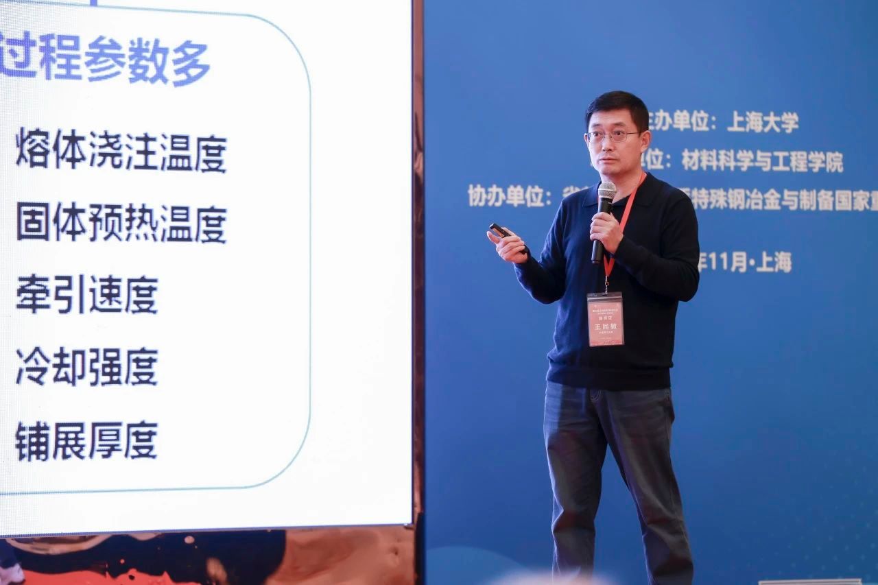 该分会场由365完美体育钟云波教授和杨健教授主持,报告涵盖了多个重要主题。大连理工大学王同敏教授作题为《结构钢/减摩铜合金层状材料水平连续固液复合技术及应用》的报告;中南大学副校长郭学益教授作题为《新质冶金发展思考》的报告;北京科技大学副校长吕昭平教授作题为《克服先进金属材料的强度塑性矛盾》的报告;西安建筑科技大学副校长王快社教授作题为《先进金属材料搅拌摩擦技术研究与应用》的报告;北京工业大学席晓丽教授作题为《钨二次资源循环再生技术进展》的报告;哈尔滨工业大学(深圳)刘兴军教授作题为《基于多尺度集成计算的高熵高温合金加速设计与应用开发》的报告;上海电机学院张华教授作题为《重型燃气轮机材料技术的前沿与挑战》的报告;东北大学朱苗勇教授作题为《连铸坯热送与直接轧制一体化绿色制备板带钢关键理论与技术》的报告;北京科技大学侯新梅教授作题为《多场多因素耦合界面反应解析与应用》的报告;最后,365完美体育钟云波教授作题为《先进高品质铜合金的多级仿生异构设计及应用展望》的报告。