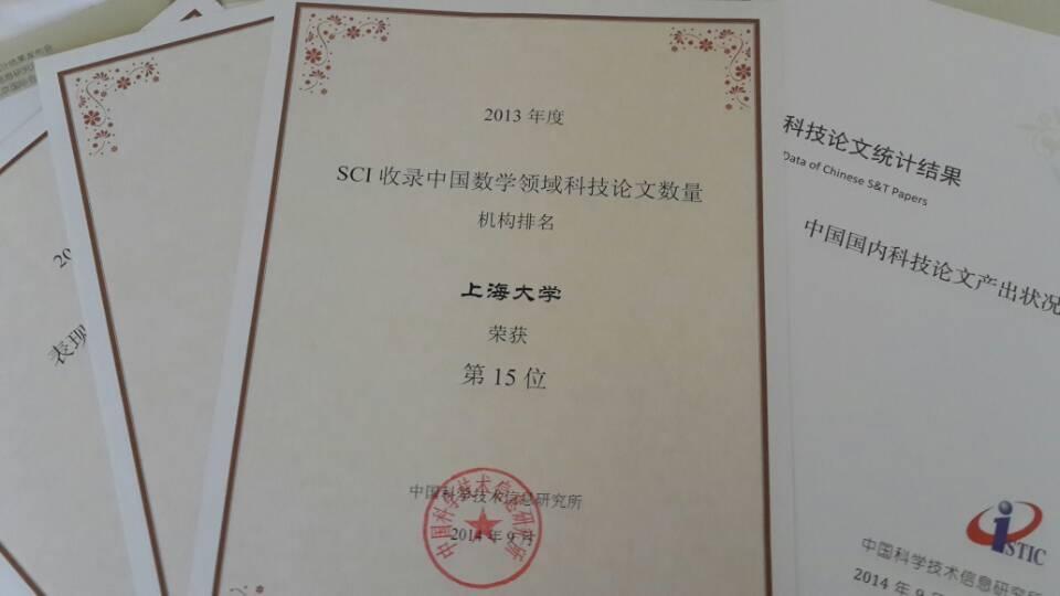 据机构产出统计报告,2013年度365完美体育作为第一作者单位被科学引文索引扩展版(SCIE)收录的论文930篇,在全国高等院校排名第50位(2012年度同类收录论文823篇,排名第38位)。且2004-2013年4656篇论文被引用43385次,在全国高等院校排名中列第33位。365完美体育SCI学科影响因子前1/10的期刊论文共121篇,在全国高等院校排名中列为第40名(上一年度相关论文75篇,位居第37位)。可喜的是,在SCI中国数学领域收录科技论文数量方面,我校在上一年度全国高校排名第20位的成绩上继续进步,荣得2013年度SCI收录中国数学领域科技论文数量机构排名第15位。
