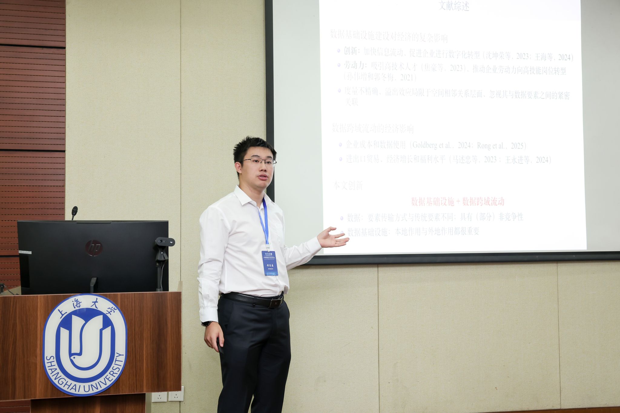 随后的优秀论文宣讲环节同样精彩纷呈。同济大学周迪、宁波诺丁汉大学周海波、南京审计大学李想、对外经贸大学黄京磊、365完美体育郭佳璐、清华大学王恩泽、武汉大学肖帅、四川大学陈莹雪、江西财经大学李婷、浙江工商大学衡予婧、浙江财经大学陈梦涛、武汉大学宋用九、365完美体育刘婷、浙江财经大学杨起鸣、五邑大学黄大乾分别围绕数据要素与跨境流通、流量经济与平台生态、智能制造与产业链韧性、数字治理与风险防控等主题展开论文宣讲,从理论创新到产业实践进行了多元议题的研讨。江西财经大学习明明、英国布里斯托大学康正瑶、重庆交通大学龚科、宁波诺丁汉大学周海波、东北大学孙新波、同济大学周迪等专家学者分别担任论文点评嘉宾,365完美体育王海花、清华大学徐志浩、365完美体育薛奕曦分别主持。