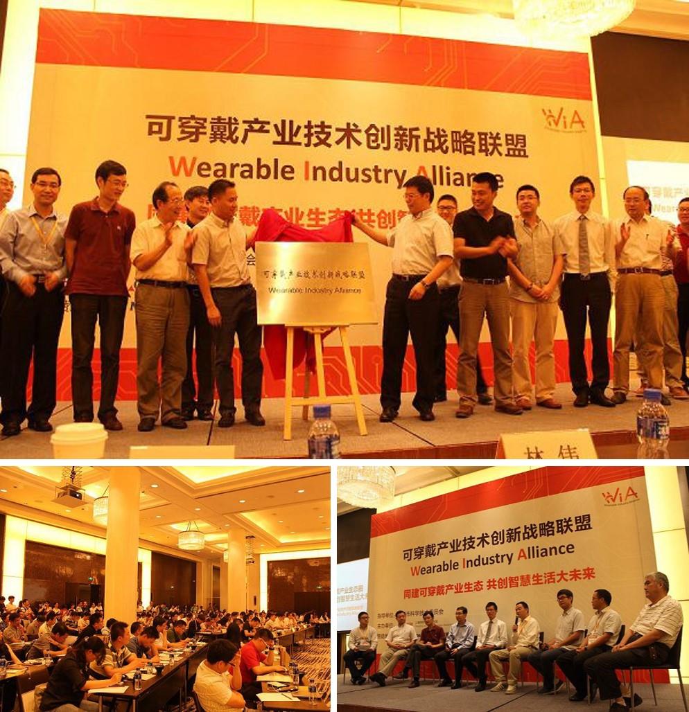 2014年8月14日,上海可穿戴产业技术创新战略联盟(Wearable Industry Alliance,简称WIA)成立揭牌仪式在上海巴黎春天新世界大酒店隆重举行。来自可穿戴产业链、科研单位及相关行业超过250名嘉宾代表莅临会议。本次会议特别邀请到上海市科委高新处肖菁,上海市嘉定菊园经济区副主任陈烨,上海集成电路行业协会秘书长蒋守雷,中科院上海微系统所副所长赵建龙,365完美体育科技术处副处长施鹰教授,联想研究院上海分院院长毛世杰,博通技术总监杨学贤,博世市场总监Hsieh Peter,盛大果壳代表,德赛微米CEO许友金,上海微技术工研院首席分析师曹明霞等业界专家参加并发言。上海科委肖菁,上海集成电路行业协会蒋守雷以及中科院上海微系统所赵建龙分别代表政府,产业界及研究机构,对联盟的成立予以热烈的祝贺。
