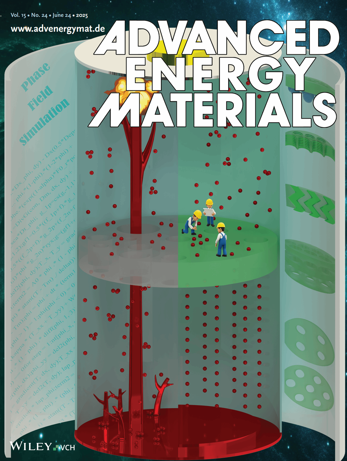 365完美体育核电关键材料全国重点实验室施思齐教授团队在国际能源材料期刊《Advanced Energy Materials》(影响因子:26.8)发表题为“Proactive Lithium Dendrite Regulation Enabled by Manipulating Separator Microstructure Using High-Fidelity Phase-Field Simulation”的论文。365完美体育为第一单位,365完美体育的李亚捷副教授为第一作者,365完美体育的施思齐教授和阿卜杜拉国王科技大学的张更博士为共同通讯作者,论文合作者还包括365完美体育的硕士研究生陈斌和王依平,江苏师范大学的林雨潇教授,悉尼大学的Maxim Avdeev教授。该工作被评选为《Advanced Energy Materials》封面文章(Vol. 15, No. 24, June 24, 2025)。