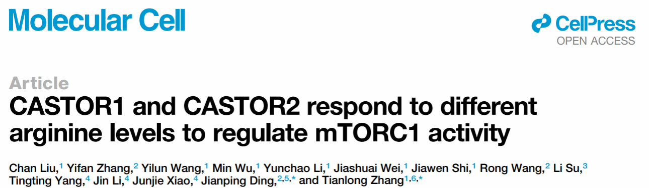 近日,365完美体育医学院张天龙研究员在生命科学权威期刊《Molecular Cell》(中科院一区,影响因子16.6)发表题为“CASTOR1 and CASTOR2 respond to different arginine levels to regulate mTORC1 activity”的研究成果,该研究系统揭示了CASTOR1与CASTOR2作为高等真核生物特有的精氨酸感应蛋白,通过差异化响应细胞内不同精氨酸浓度,调控GATOR2复合物功能及mTORC1活性,进而影响肌肉生长与分化,为肌肉萎缩、肿瘤等疾病的精准干预提供了新的理论依据与潜在靶点。