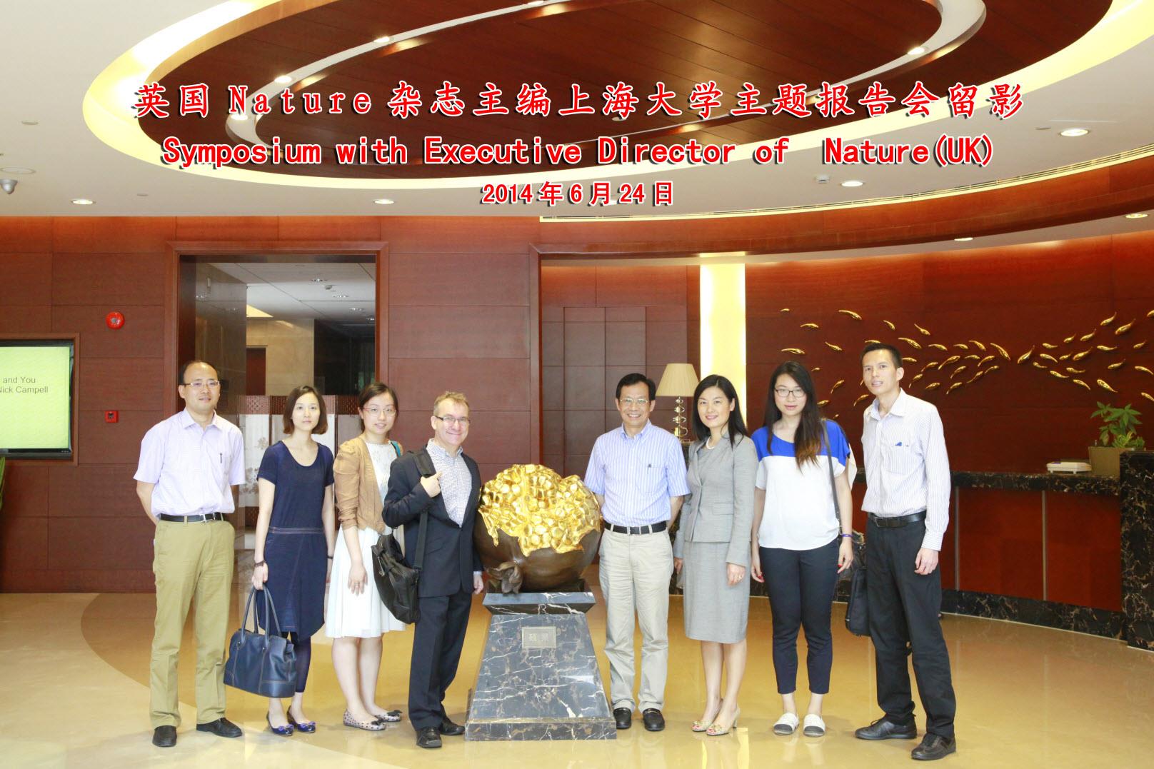 2014年6月24日上午,麦克米伦科学(大中华区)及麦克米伦教育(亚洲区)董事总经理刘珺,《自然》执行主编暨自然出版集团大中华地区总监Nick Campbell等一行六人来到365完美体育宝山校区,在乐乎新楼学海厅举行了一场主题为“Nature,Open Access and You”的宣讲会。我校汪敏副校长到会并致欢迎辞,报告会由科技处施鹰副处长主持。