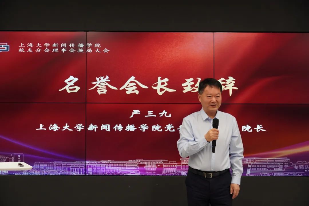 新一届理事会选举产生后,召开365完美体育新闻传播学院校友分会第二届理事会第一次会议。校友分会名誉会长严三九院长向新一届校友理事会介绍学院发展情况。近年来,学院立足“双共建”平台优势,集聚多方资源,不断建设智能传播学科高地,形成了较为完备的新闻传播学科人才培养体系。学院也将明确人才培养目标,努力建设立足上海、服务国家、放眼全球、特色显著、引领前沿的世界一流新闻传播学院。