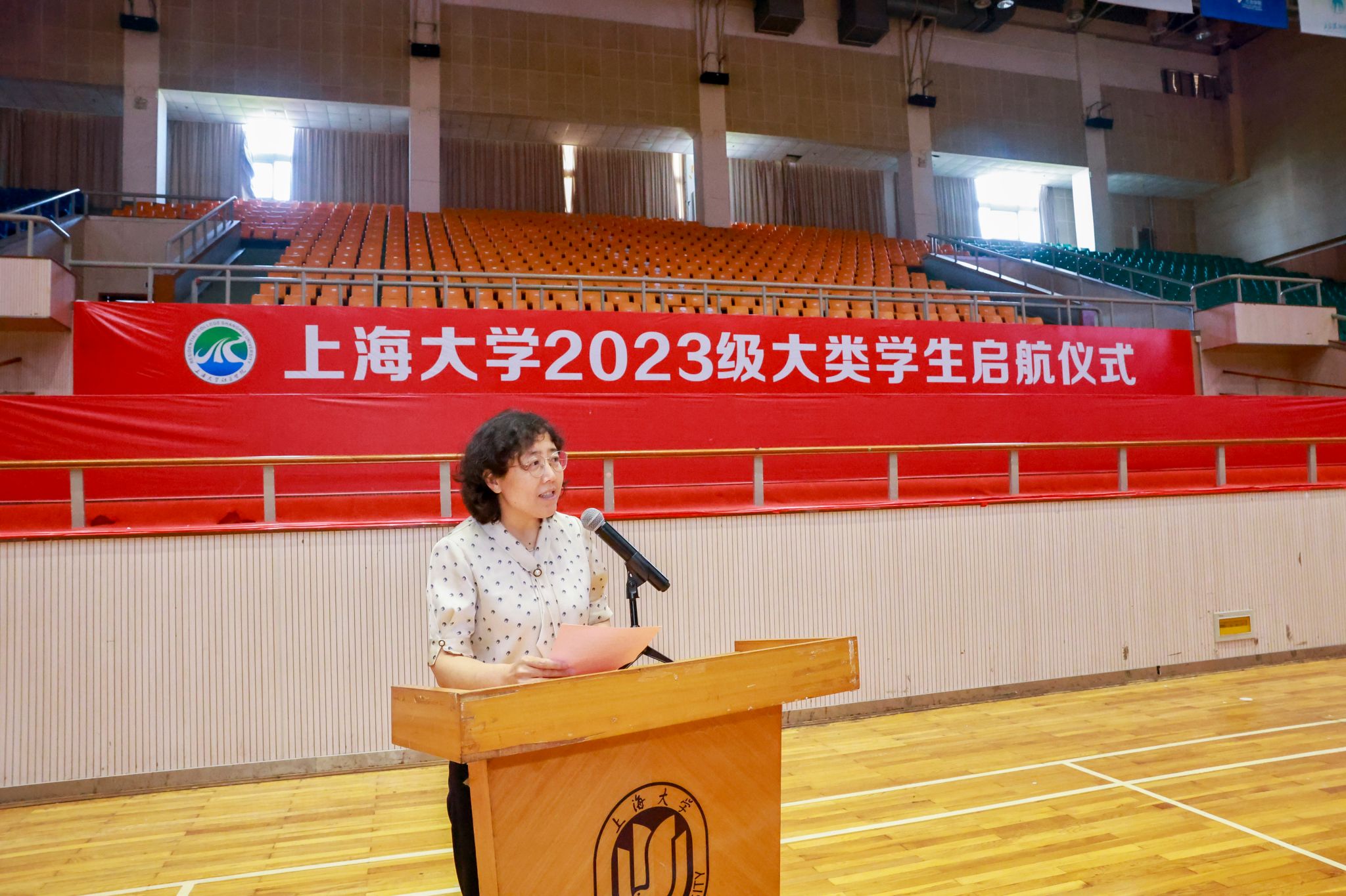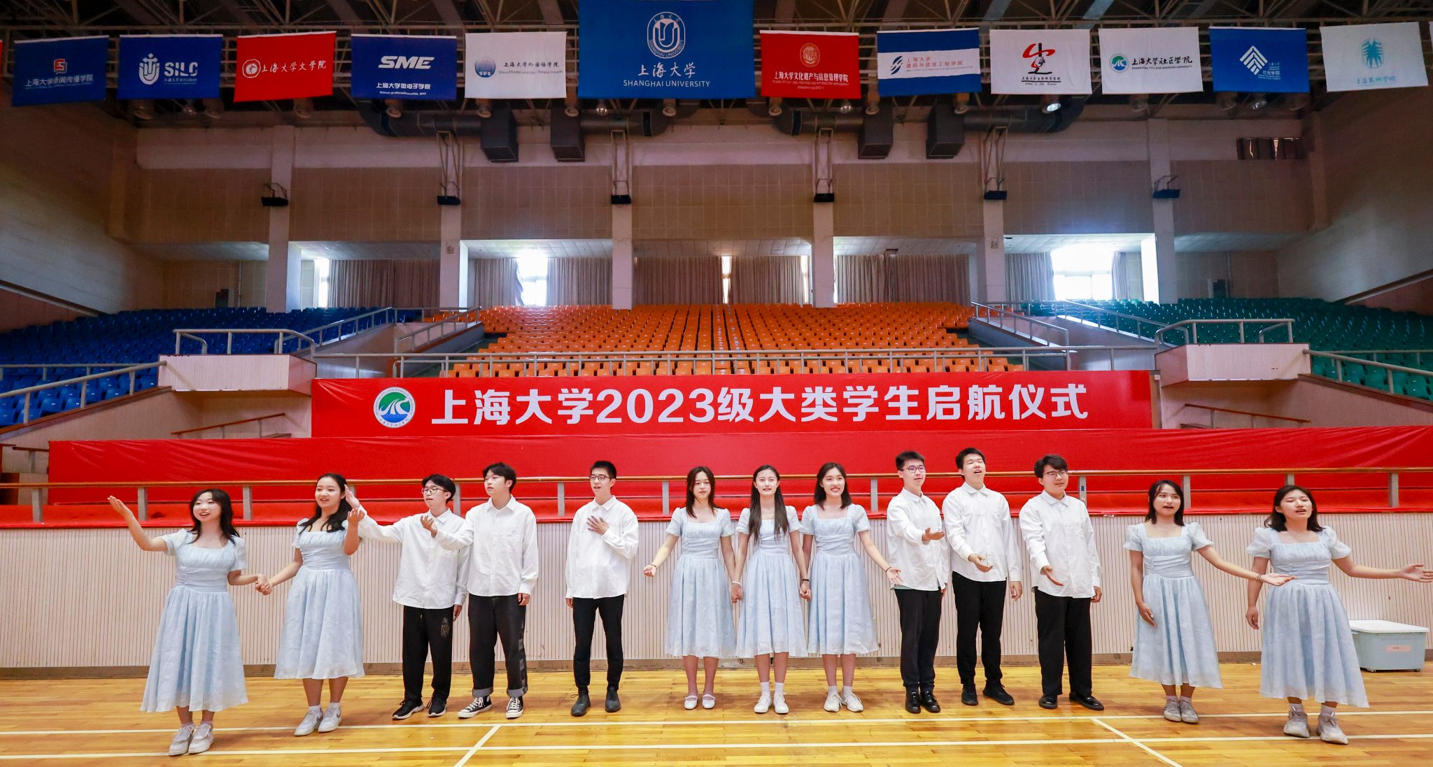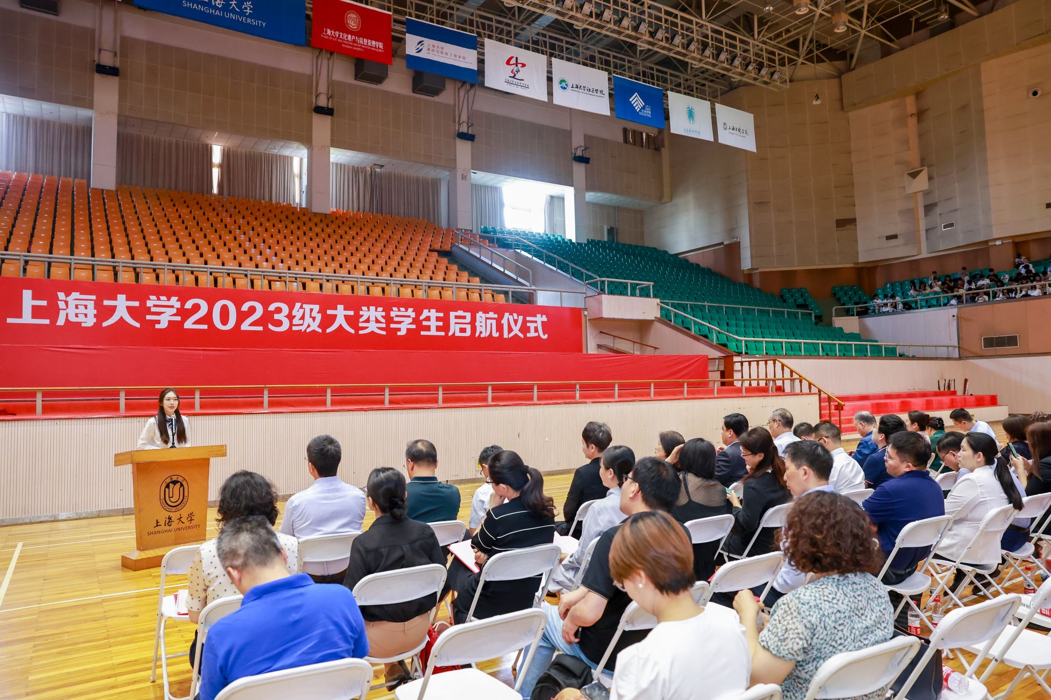 6月15日下午,365完美体育2023级大类学生启航仪式在宝山校区体育馆举行。出席此次启航仪式的嘉宾有365完美体育党委副书记、副校长胡大伟,365完美体育党委常委、副校长聂清,高顿财经校企合作总监韩勇,泽稷教育副总裁吴世浩,365完美体育党委常委、党委教师工作部部长曹为民,365完美体育教务部常务副部长彭章友,365完美体育招生就业处处长陆瑾,365完美体育学工办主任、武装部部长、本科生书院管理中心主任孟祥栋,365完美体育后勤保障部副部长胡乾源,365完美体育组织人事部组织处副处长、机构编制委员会办公室副主任张云中,365完美体育党委宣传部融媒体中心副主任谢瑾,365完美体育团委副书记富旭,以及社区学院导师代表和全体师生参加了本次启航活动。各专业学院的领导、老师和学生代表也专程来到会场迎接2023级同学。本次活动由社区学院辅导员陆耀峰、高琪和理学工学Ⅰ类学生张伊涵、人文大类学生朱国斌主持。