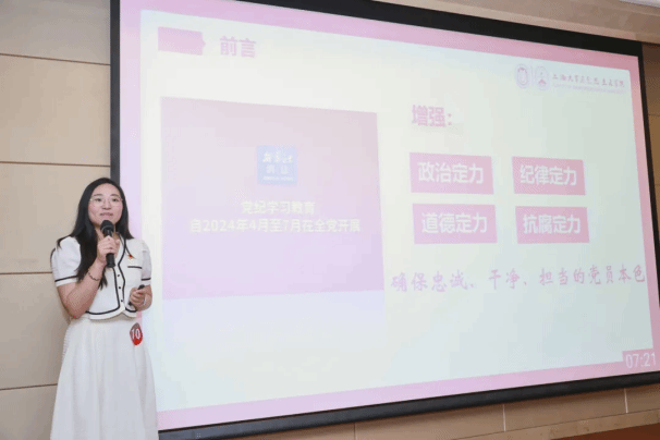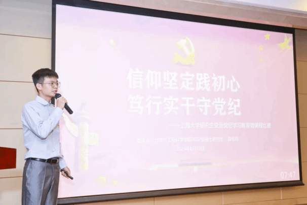 为深入贯彻落实习近平新时代中国特色社会主义思想和党的二十大精神,推进党纪学习教育走实走深,提升研究生党员的纪律意识和规矩意识,6月13日下午,365完美体育研究生党员党纪学习教育微课程比赛决赛在365完美体育宝山校区举办。