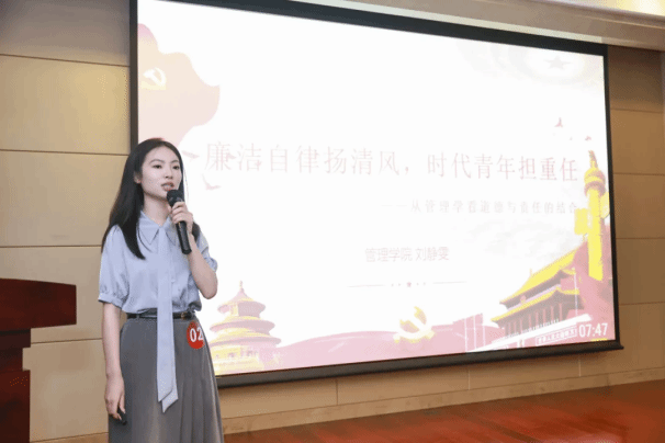 古者云:“有德言能立,无求品自高。做人常律己,正气贯云霄。”管理学院研究生党员刘静雯谈到管理学中的“透明度”和“问责制”理念与反腐倡廉紧密相关。