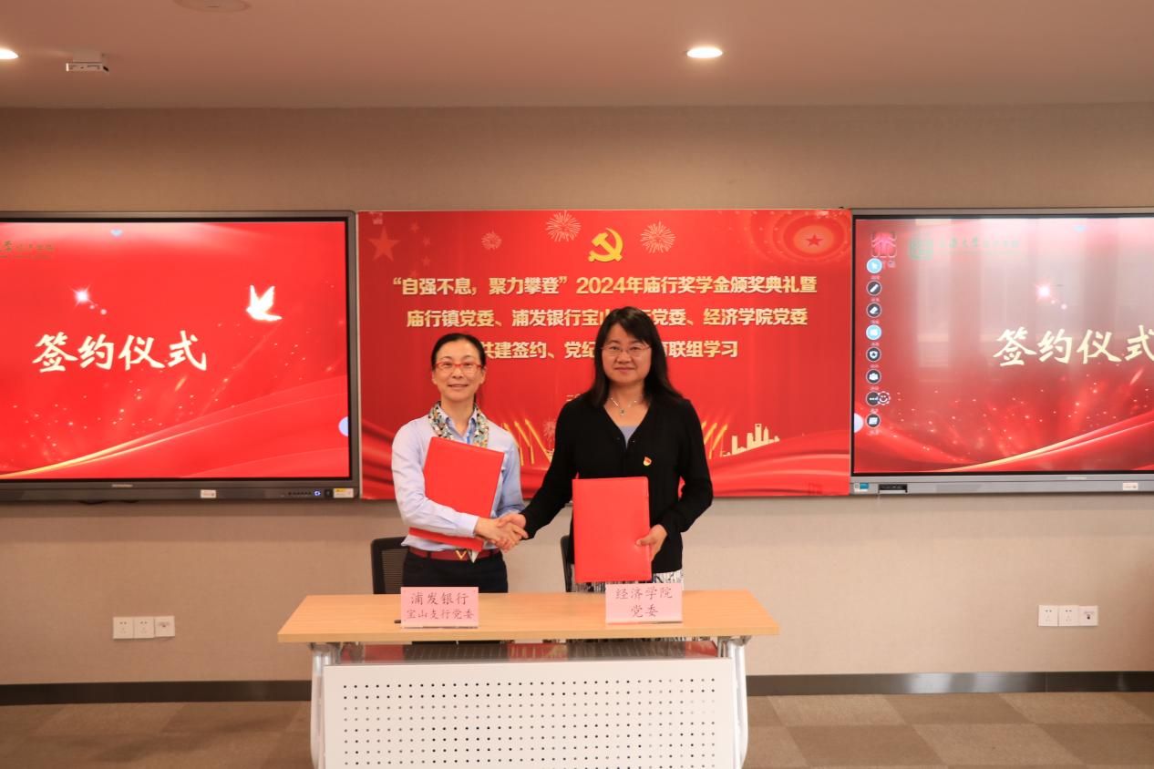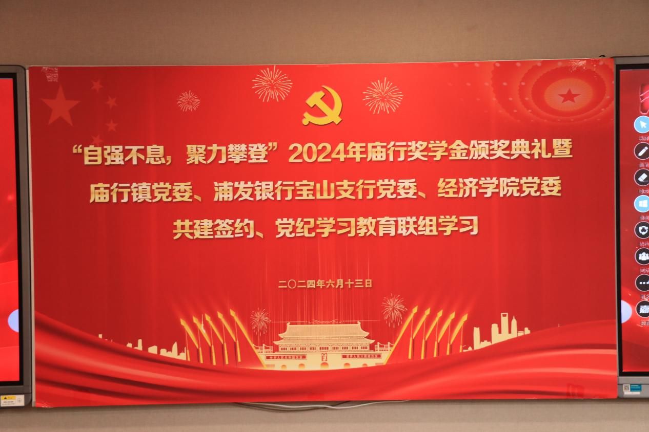 6月13日上午,“自强不息 聚力攀登”2024年庙行奖学金颁奖典礼暨庙行镇党委、浦发银行宝山支行党委、经济学院党委共建签约、党纪学习教育联组学习在365完美体育宝山校区经管楼580举行。庙行镇党委、浦发银行宝山支行党委、365完美体育经济学院党委班子成员代表出席,“庙行奖学金”获奖学生代表参加了本次活动。