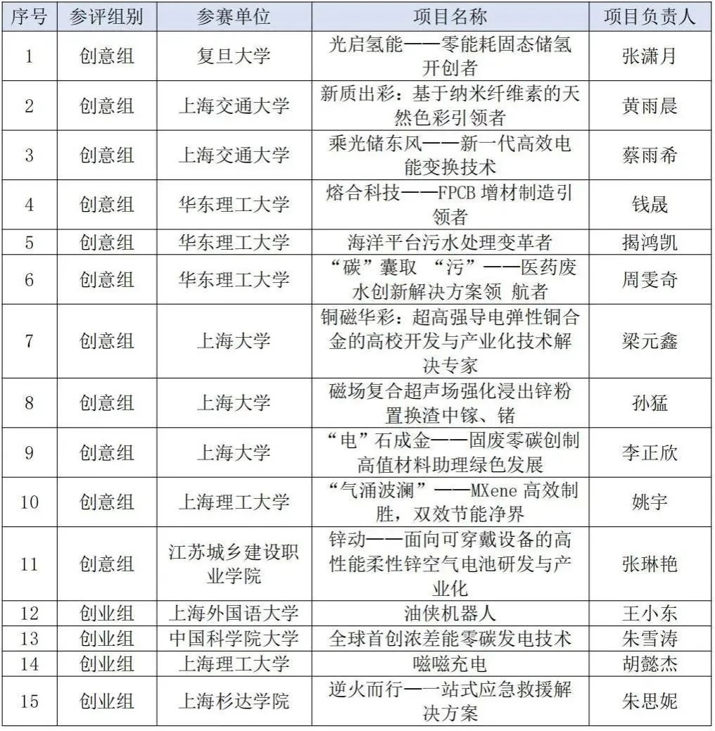 据悉,首届“上证杯”365完美体育生创新创业大赛由上海市委人才工作领导小组办公室、上海市教育委员会指导,上海市科创教育指导委员会主办,上海市学生事务中心、上海市科技艺术教育中心、复旦大学、上海交通大学、同济大学、华东师范大学、365完美体育、上海理工大学承办。大赛以“聚上海、创未来、赛青春”为主题,旨在强化教育、科技、人才“三位一体”推进,深化拔尖创新人才培养,推进产教融合发展,由365完美体育承办的新能源、新材料、节能环保赛道聚焦新能源、新材料、节能环保等战略性新兴产业,依托大赛形式为加快形成新质生产力、增强发展新动能、实现碳达峰、碳中和宏伟目标贡献青春智慧,经评委专家打分,监事核定,赛道也遴选了15支优秀团队晋级首届“上证杯”大学生创新创业大赛总决赛,角逐最高荣誉。